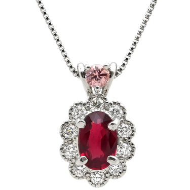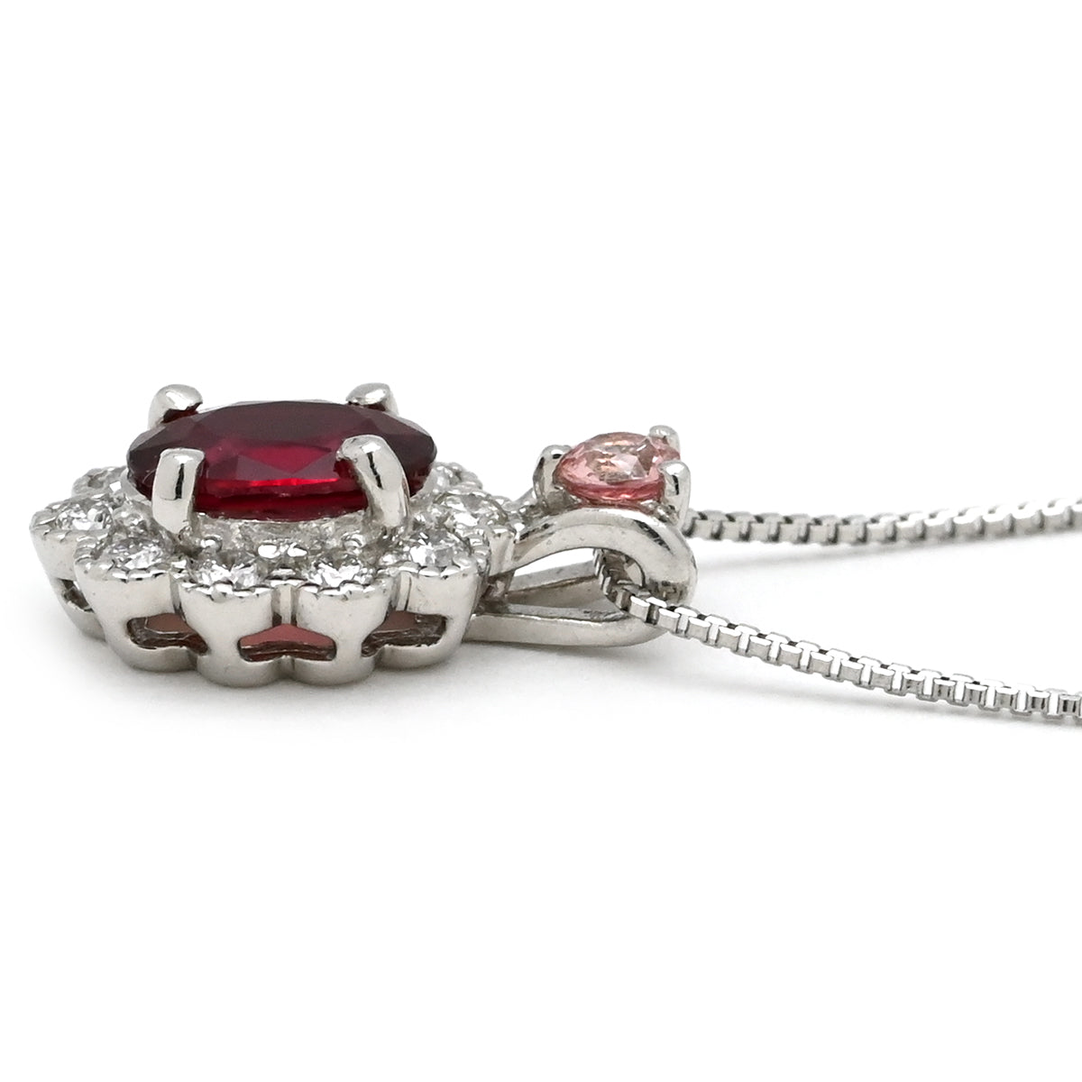 ノンブランド NON BRAND ルビー ダイヤペンダント プラチナシルバー Pt900 ルビー ダイヤモンド ピンクサファイア Pt850(チェーン) ネックレス 赤
