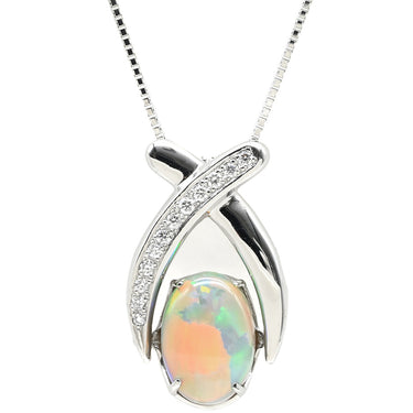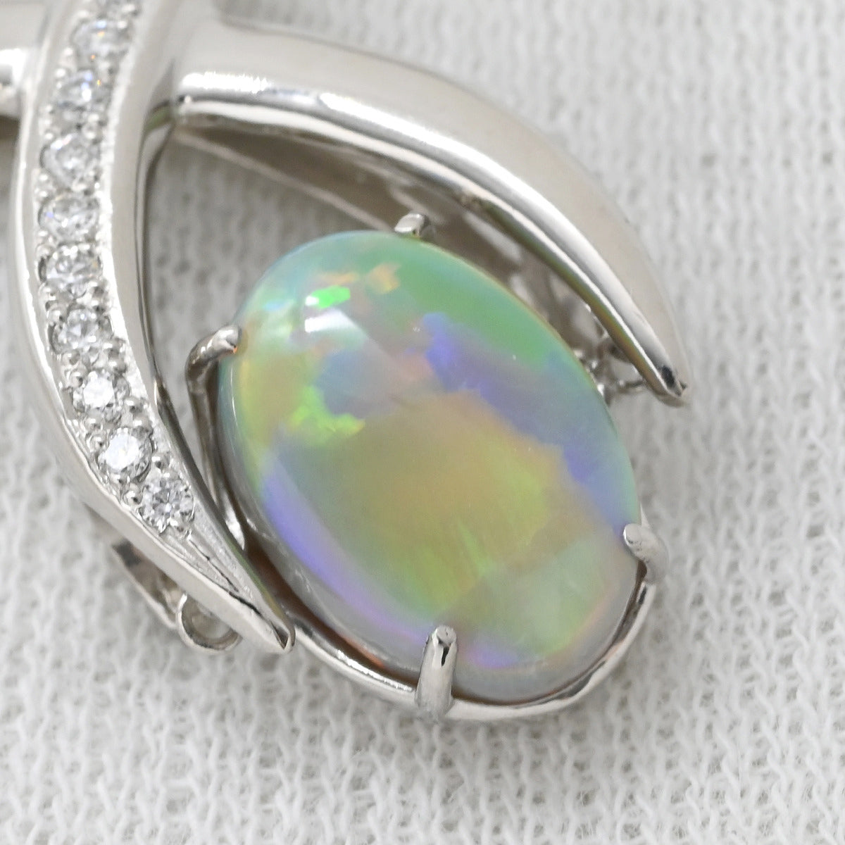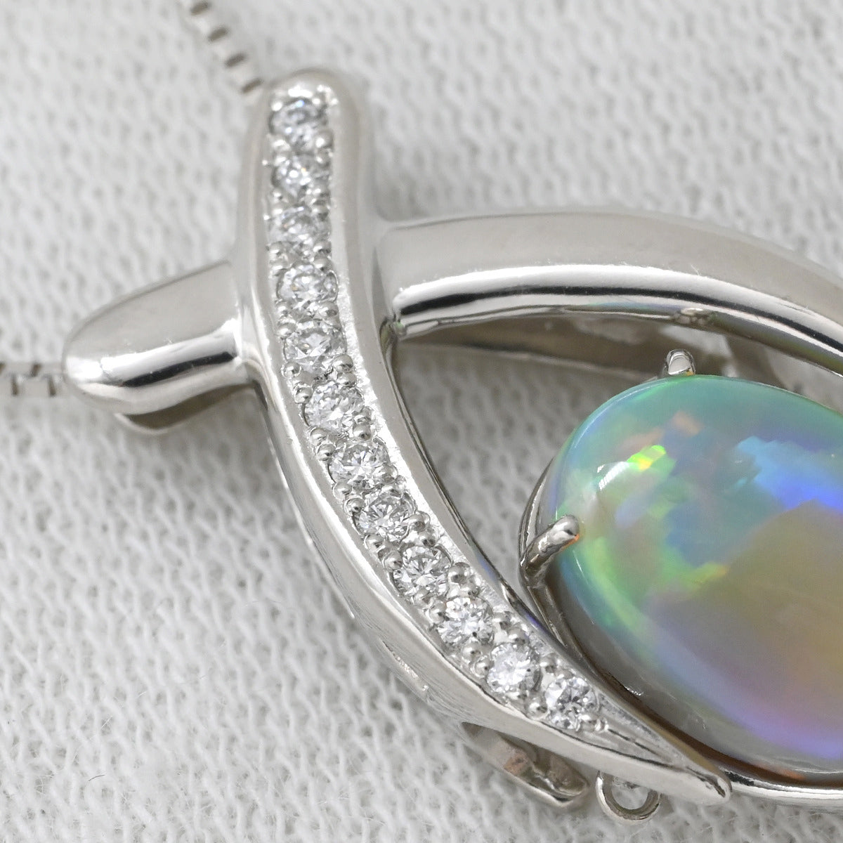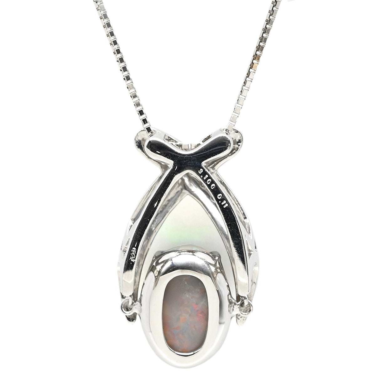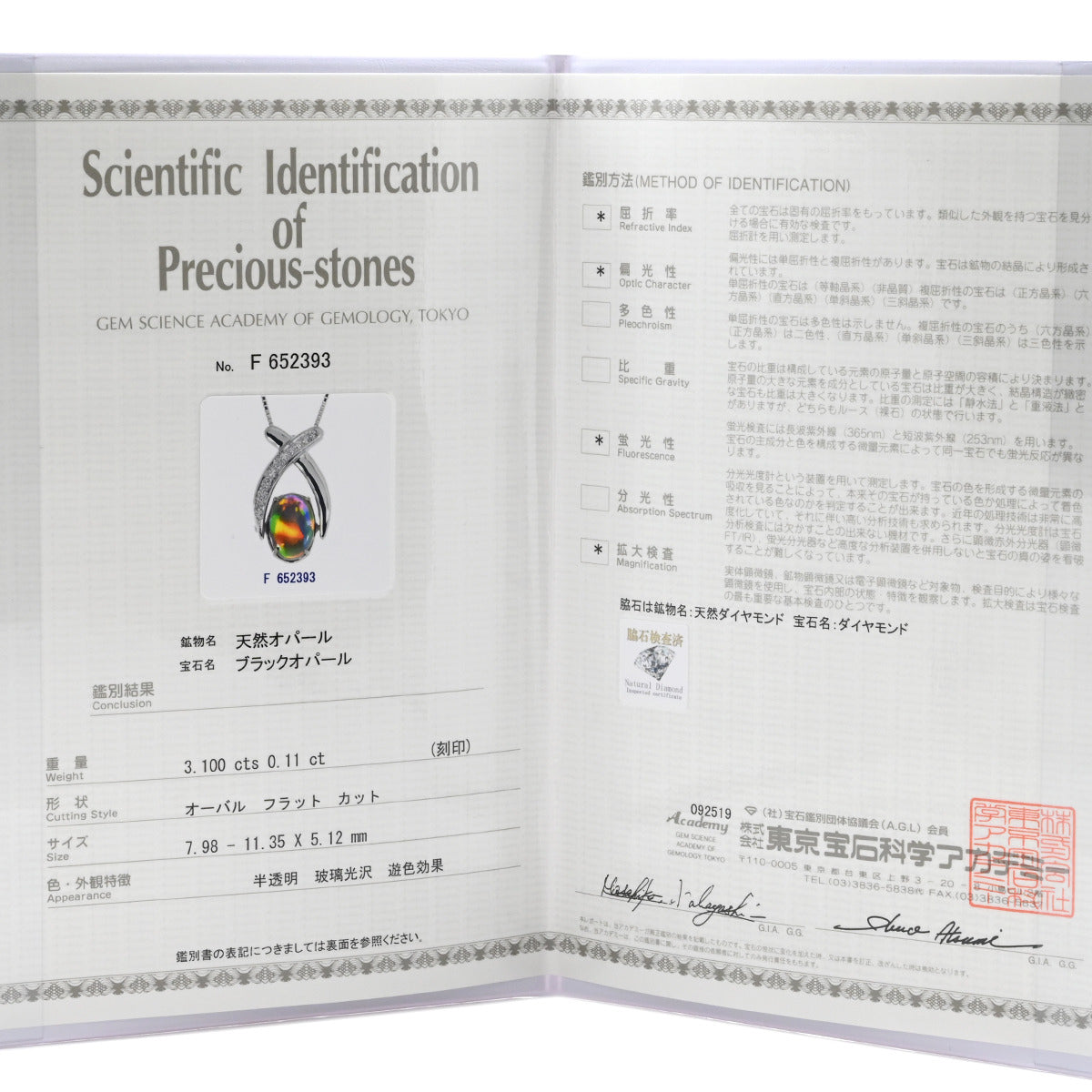 ノンブランド NON BRAND ブラックオパール ダイヤペンダント プラチナシルバーxホワイトゴールド Pt900 ブラックオパール ダイヤモンド K18WG(チェーン) ネックレス