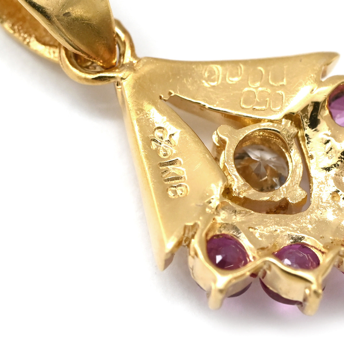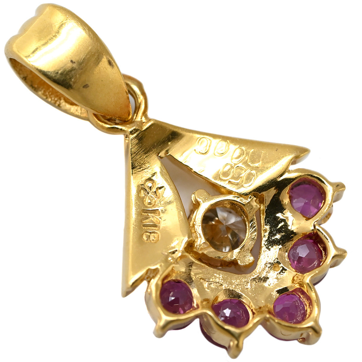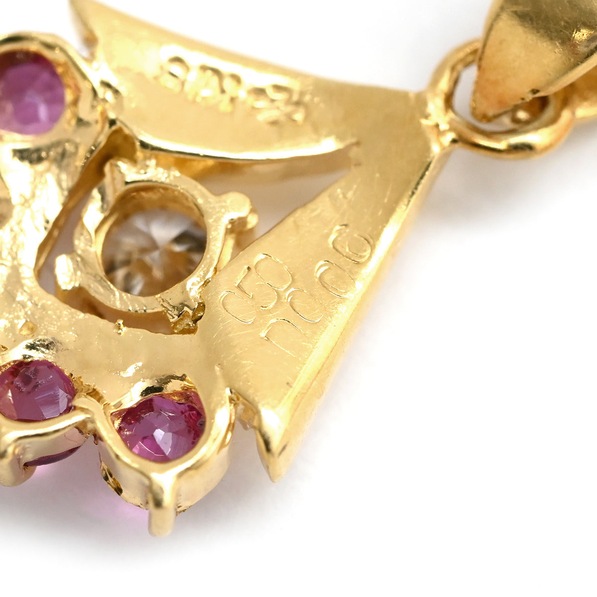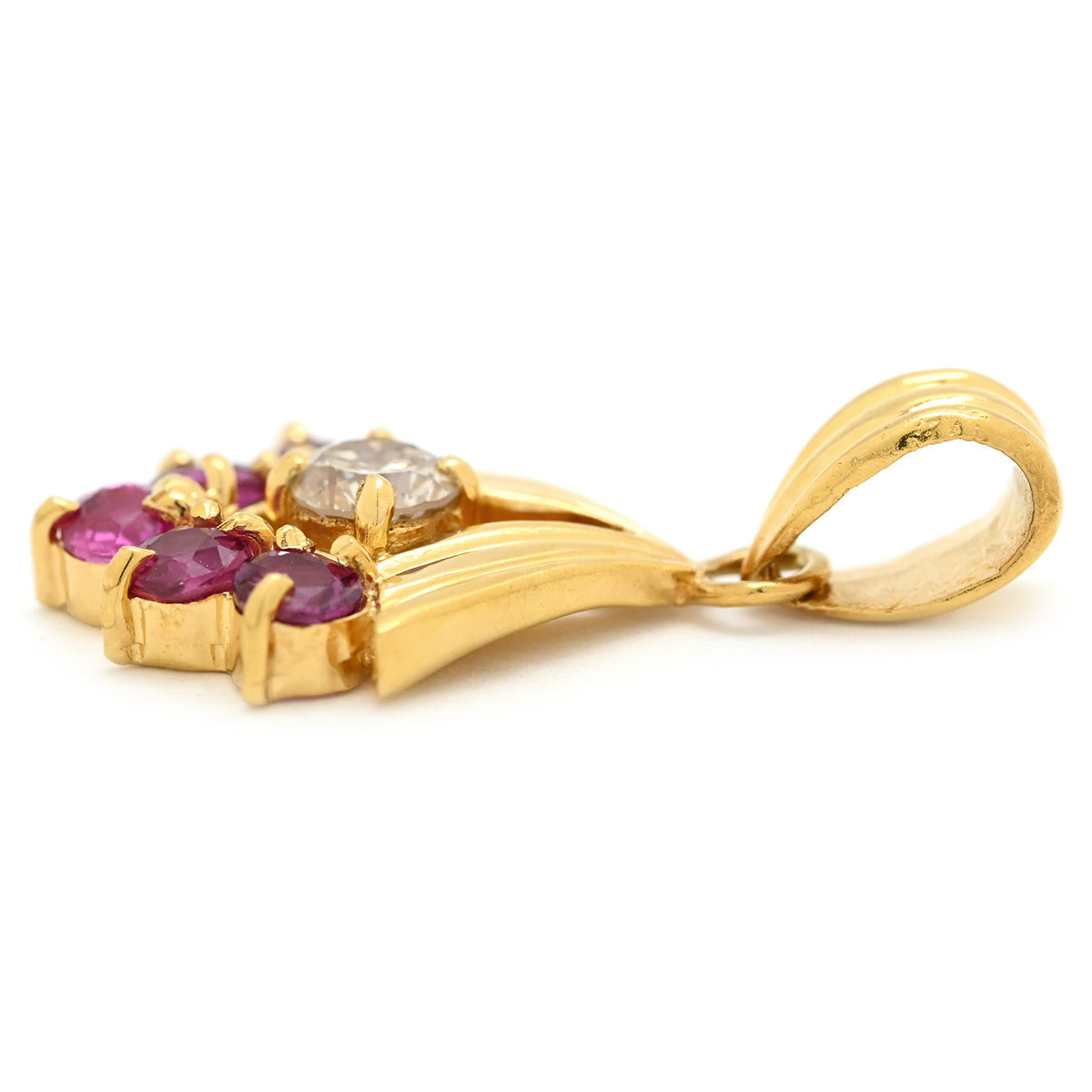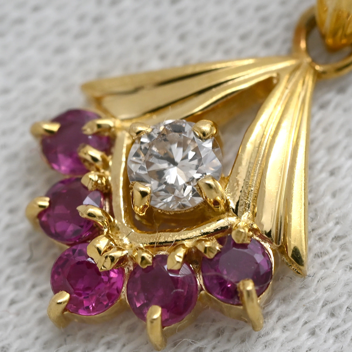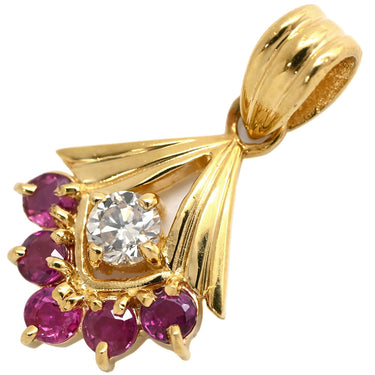 ノンブランド NON BRAND ルビー 0.50ct ダイヤモンド イエローゴールド ペンダントトップ リボン 赤 レッド ミックスカット チャーム ネックレストップ 18K 18金 750YG