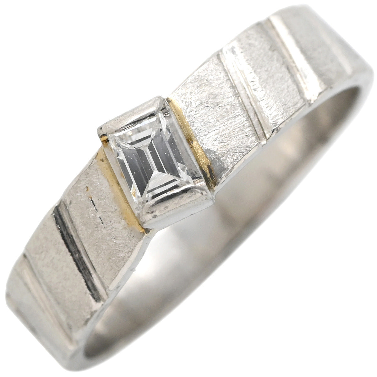 ノンブランド NON BRAND ダイヤ プラチナシルバー リング 指輪 0.10ct プラチナム Pt900 バゲットカット 1P 1石 1粒 艶消し マット加工 ミニサイズ ピンキーリング 7号