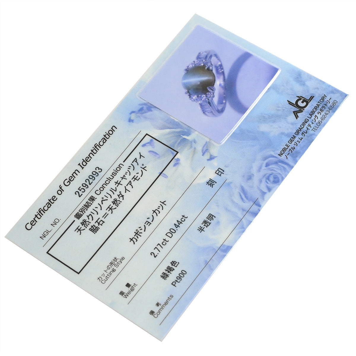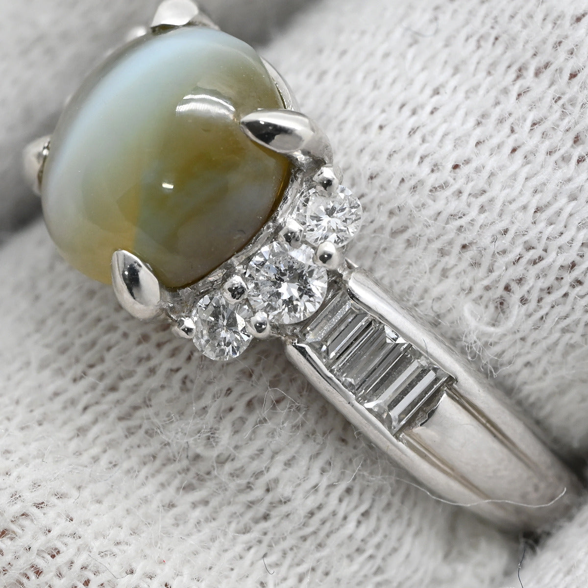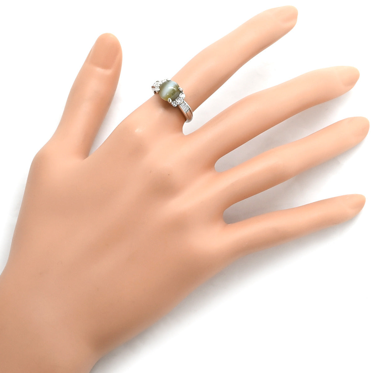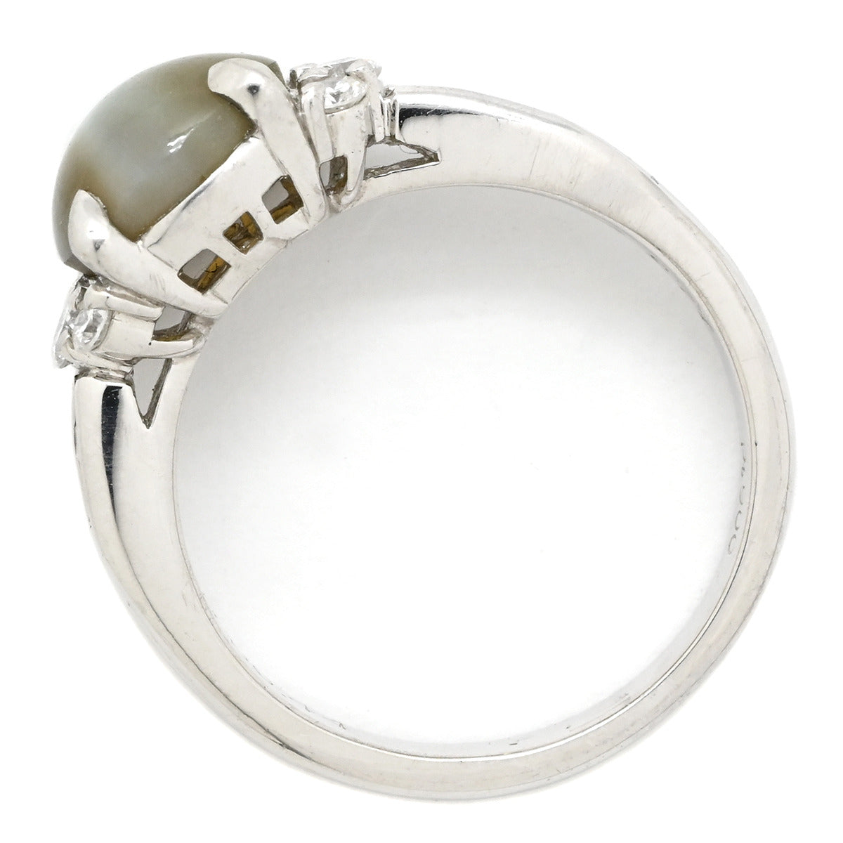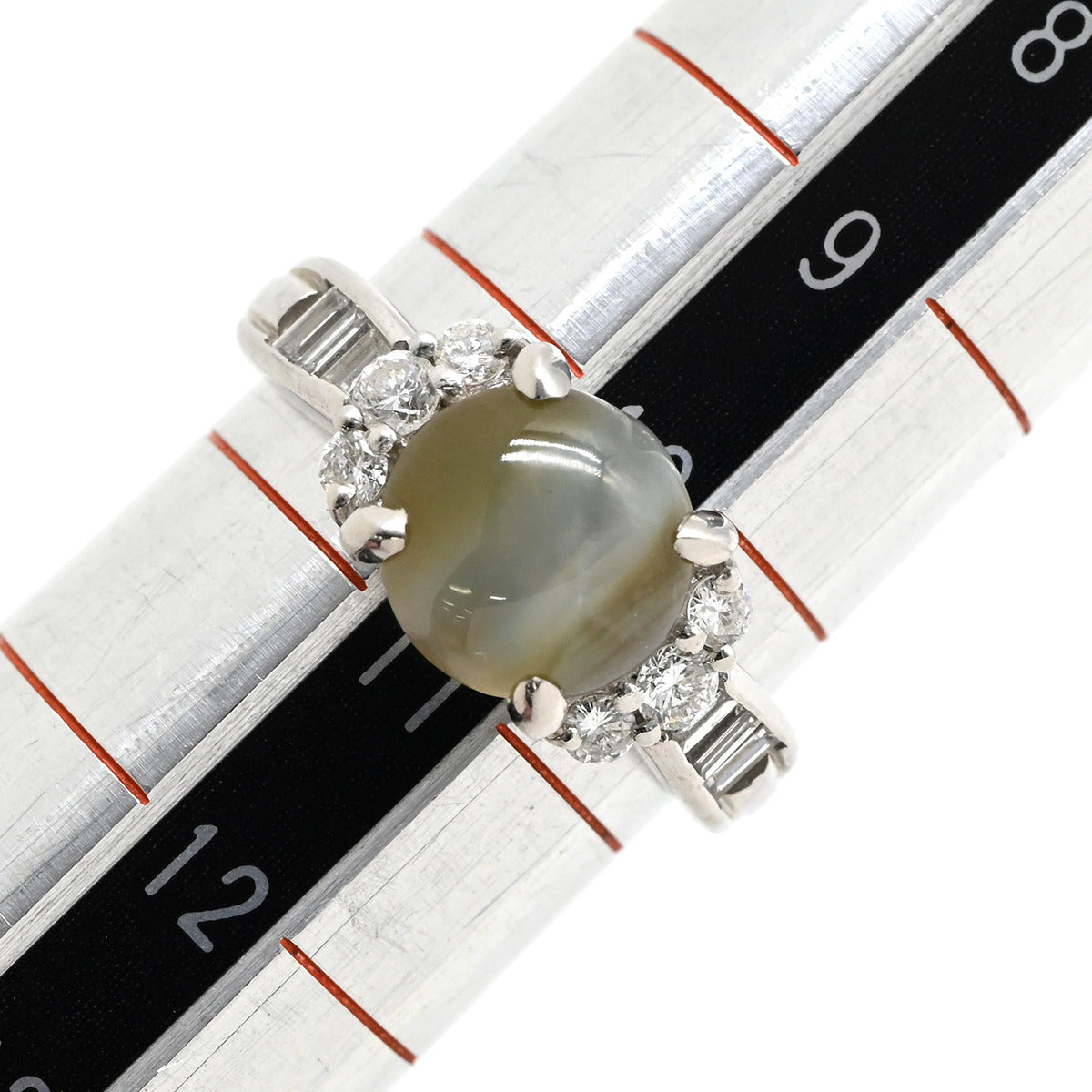 ノンブランド NON BRAND クリソベリル キャッツアイ ダイヤ リング プラチナシルバー リング 指輪 猫目石 プラチナム カボションカット PT ダイヤモンド 10.5号