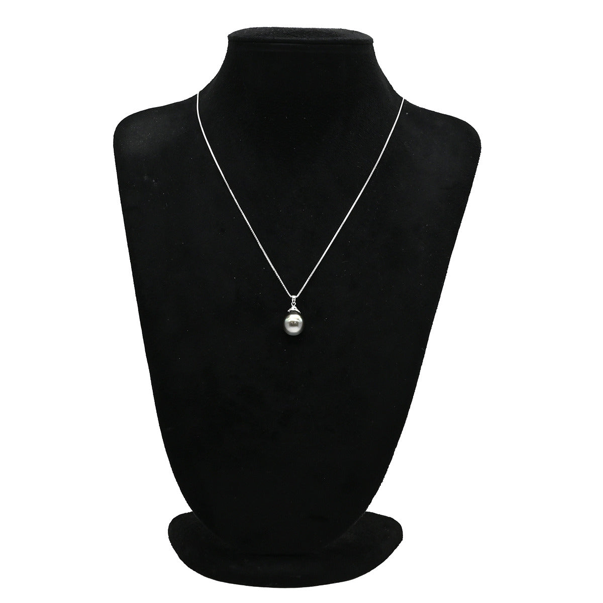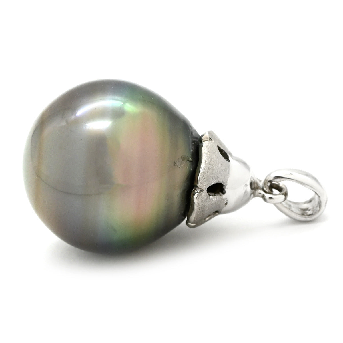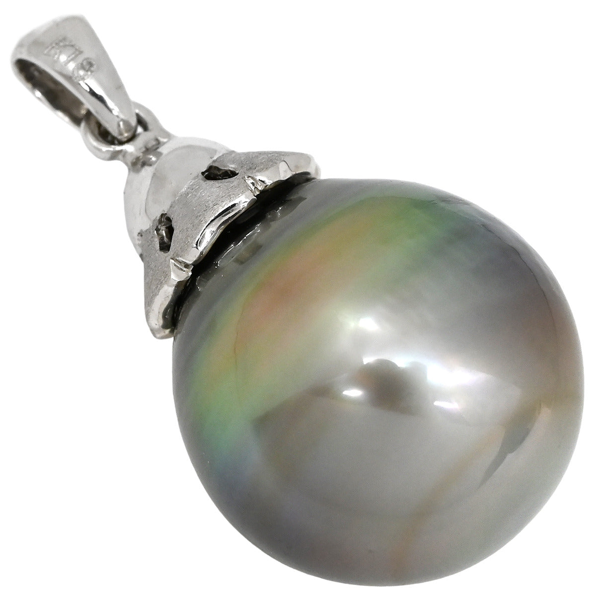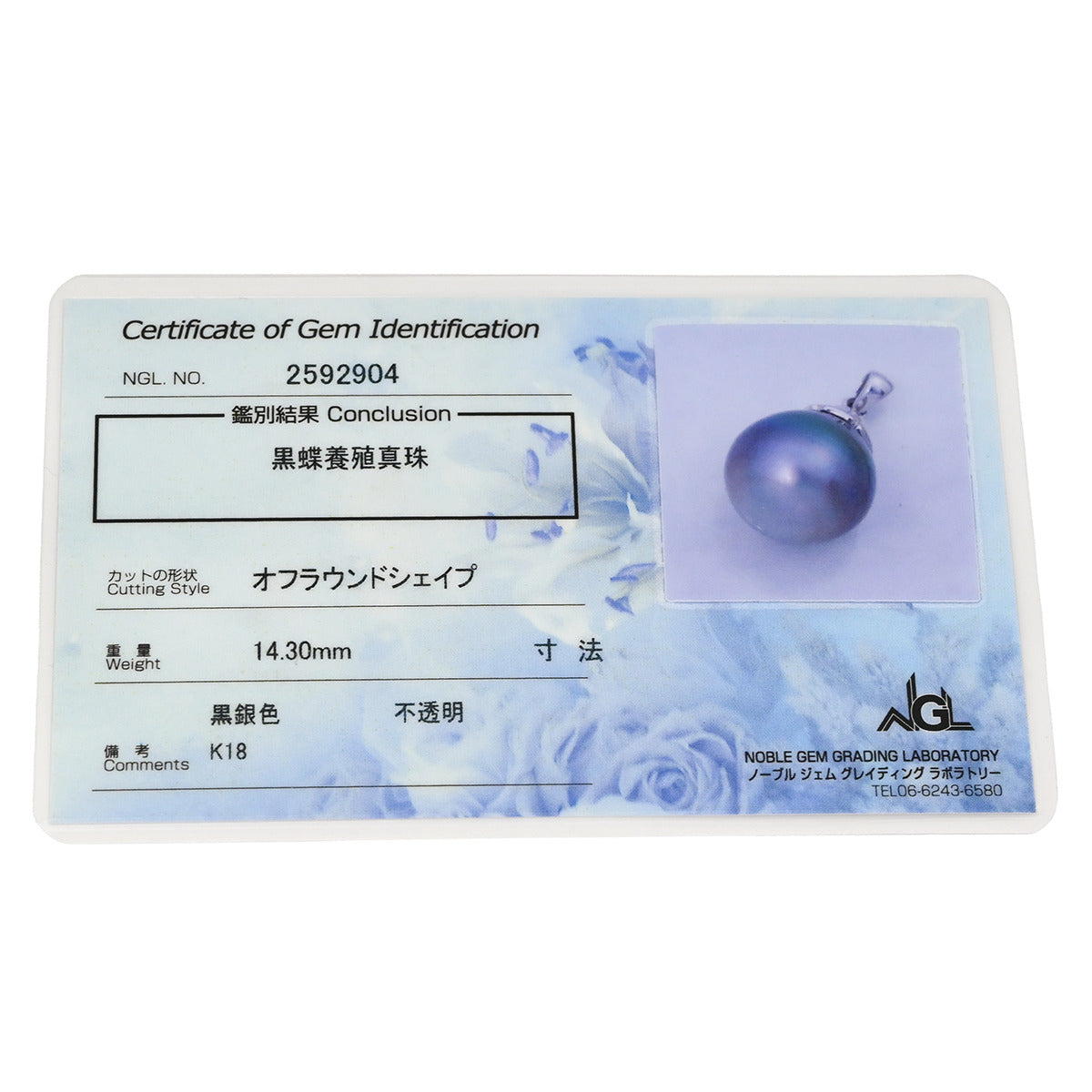 ノンブランド NON BRAND 黒蝶パール 14mm ホワイトゴールド ペンダントトップ 真珠 黒 シルバー Au750 18K 18金 ネックレストップ ペンダントヘッド オフラウンドシェイプ