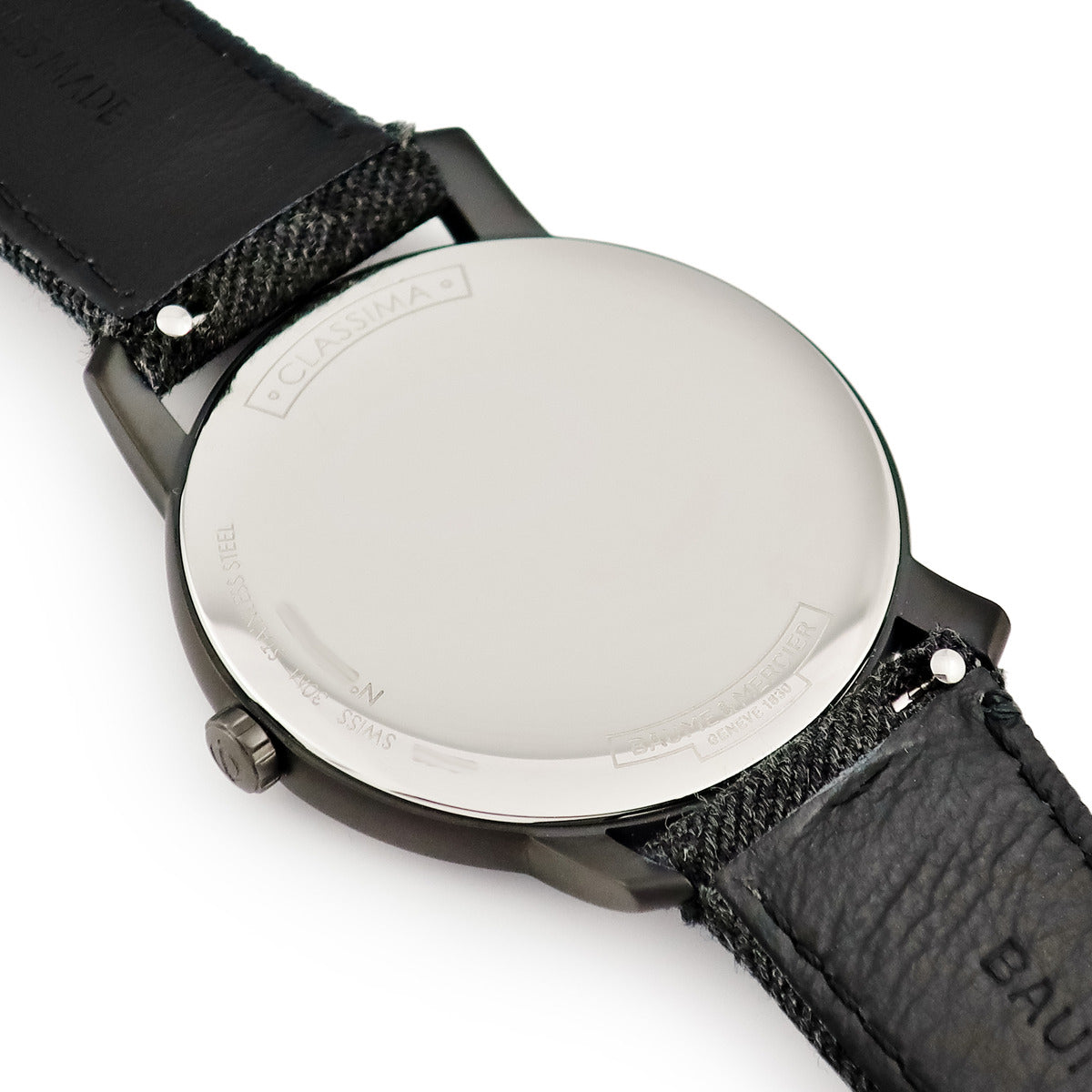 ボーム&メルシエ BAUME&MERCIER クラシマ M0A10780 クオーツ メンズ 新品同様 ブラックADLC加工 ブルー 青 デイト ローマン バー
