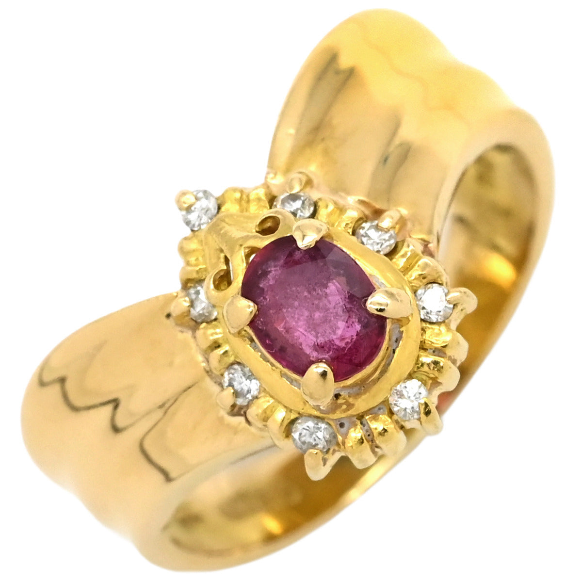 ノンブランド NON BRAND ルビー ダイヤ リング イエローゴールド リング 指輪 Au750 18K 18金 レッド 赤 7.5号
