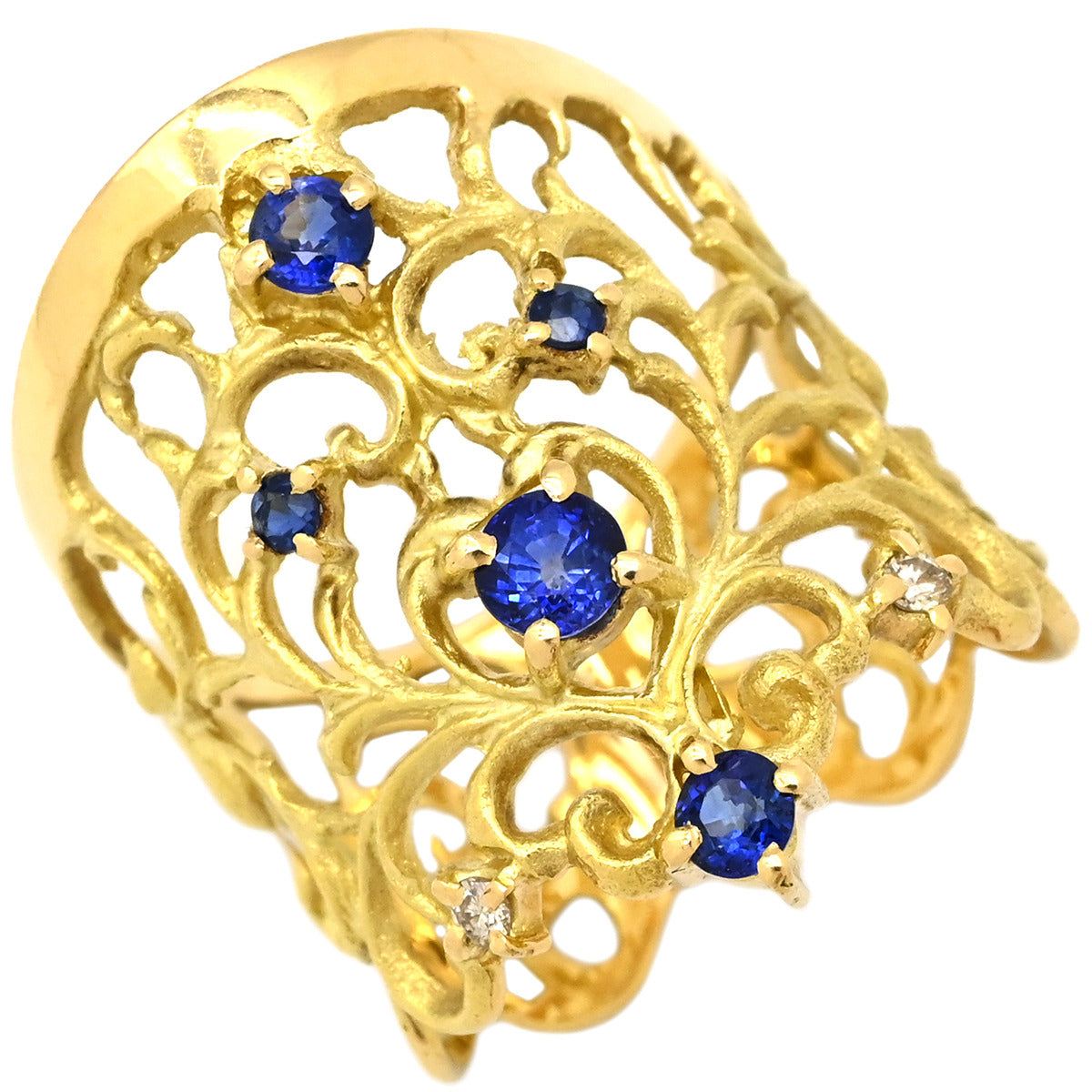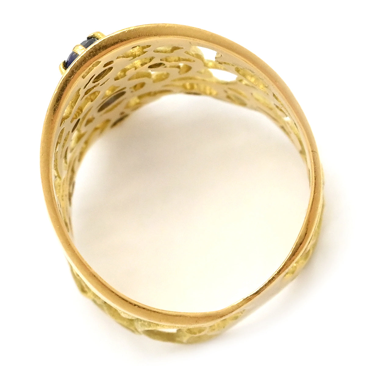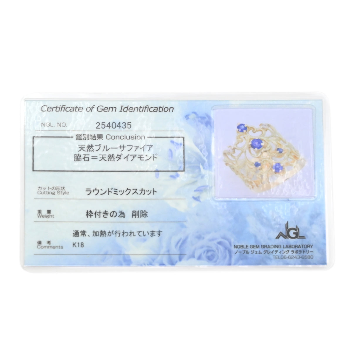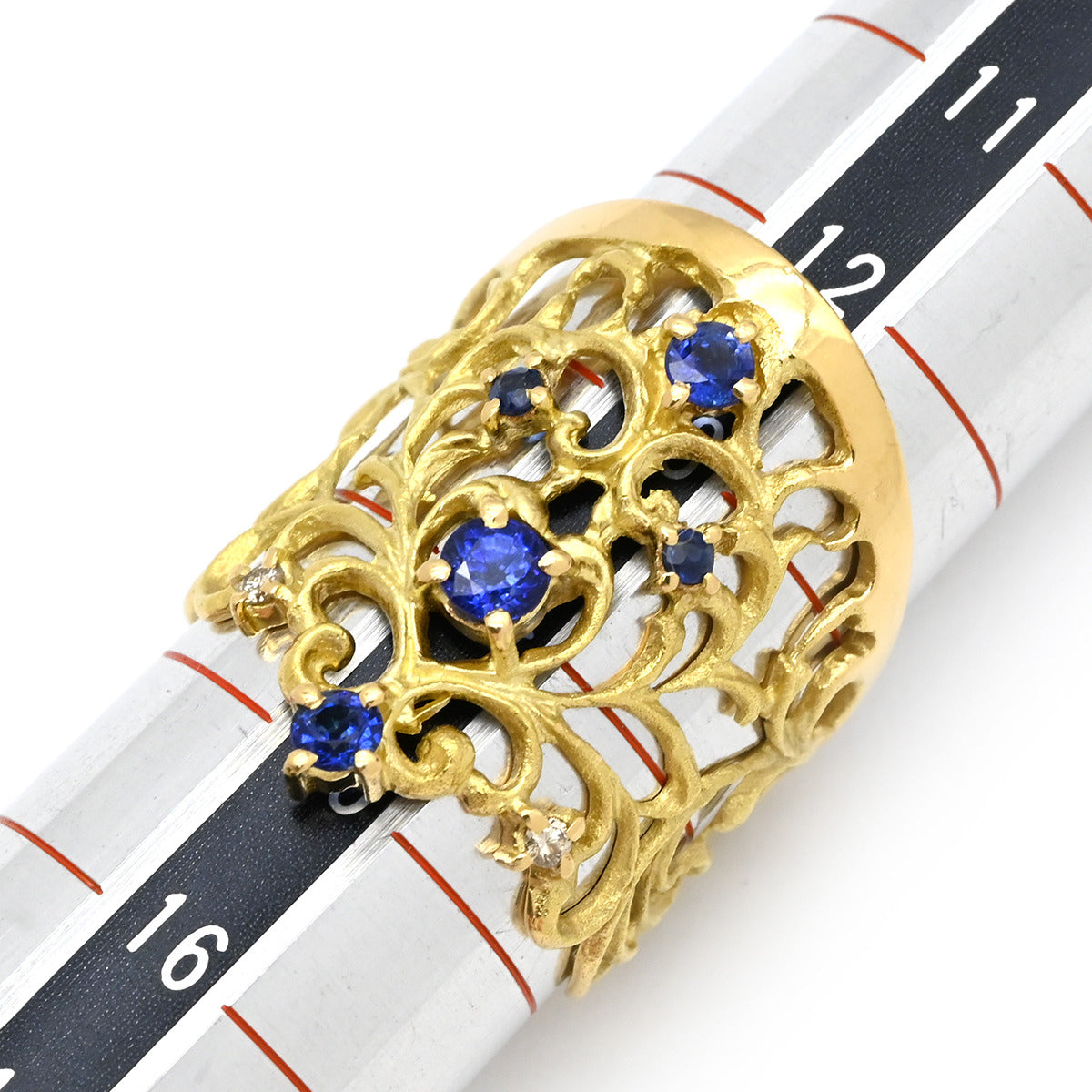 ノンブランド NON BRAND ブルーサファイア ダイヤ イエローゴールド K18YG サファイア ダイヤモンド リング 指輪 Au750 18K 18金 アンティークジュエリー 透かし彫り 14号
