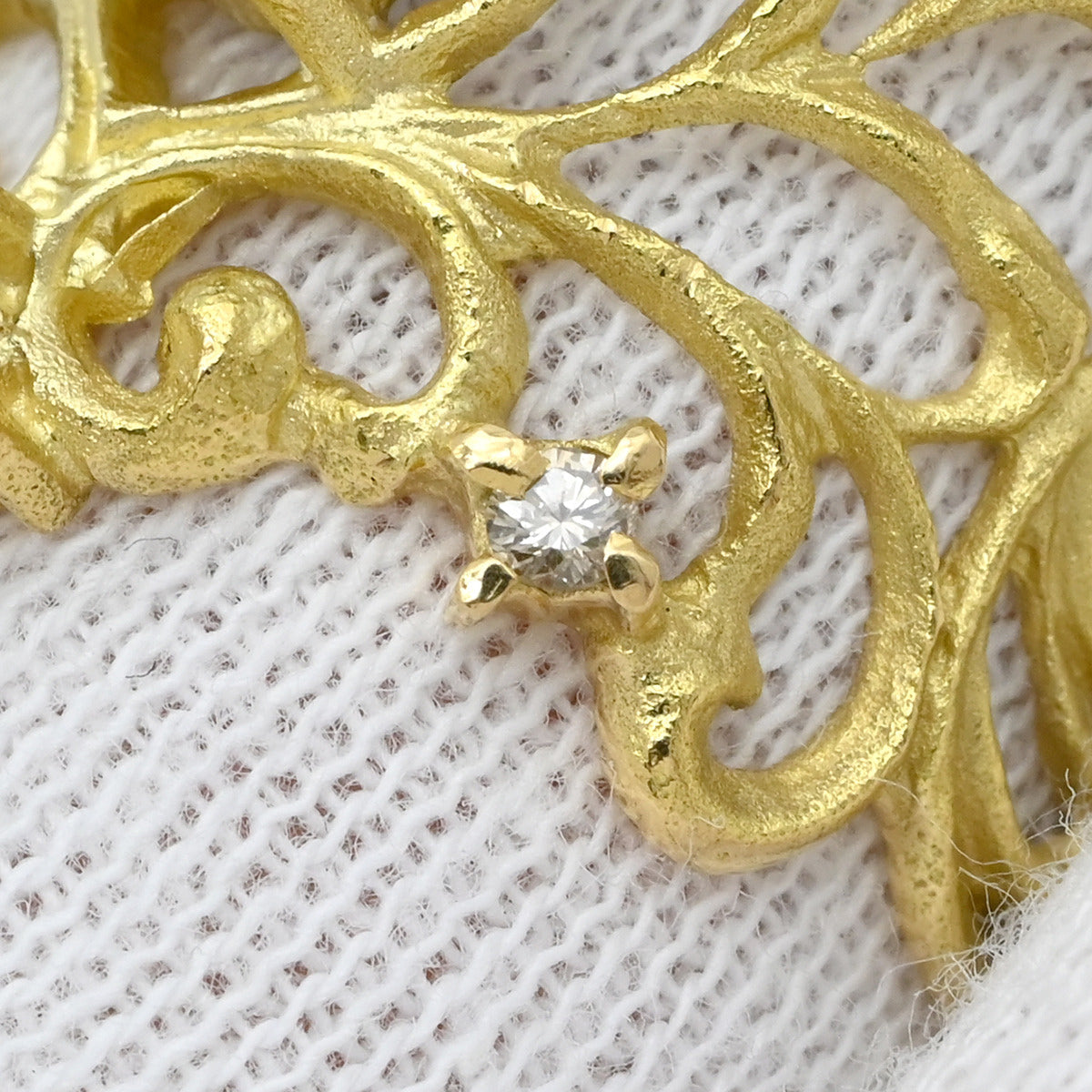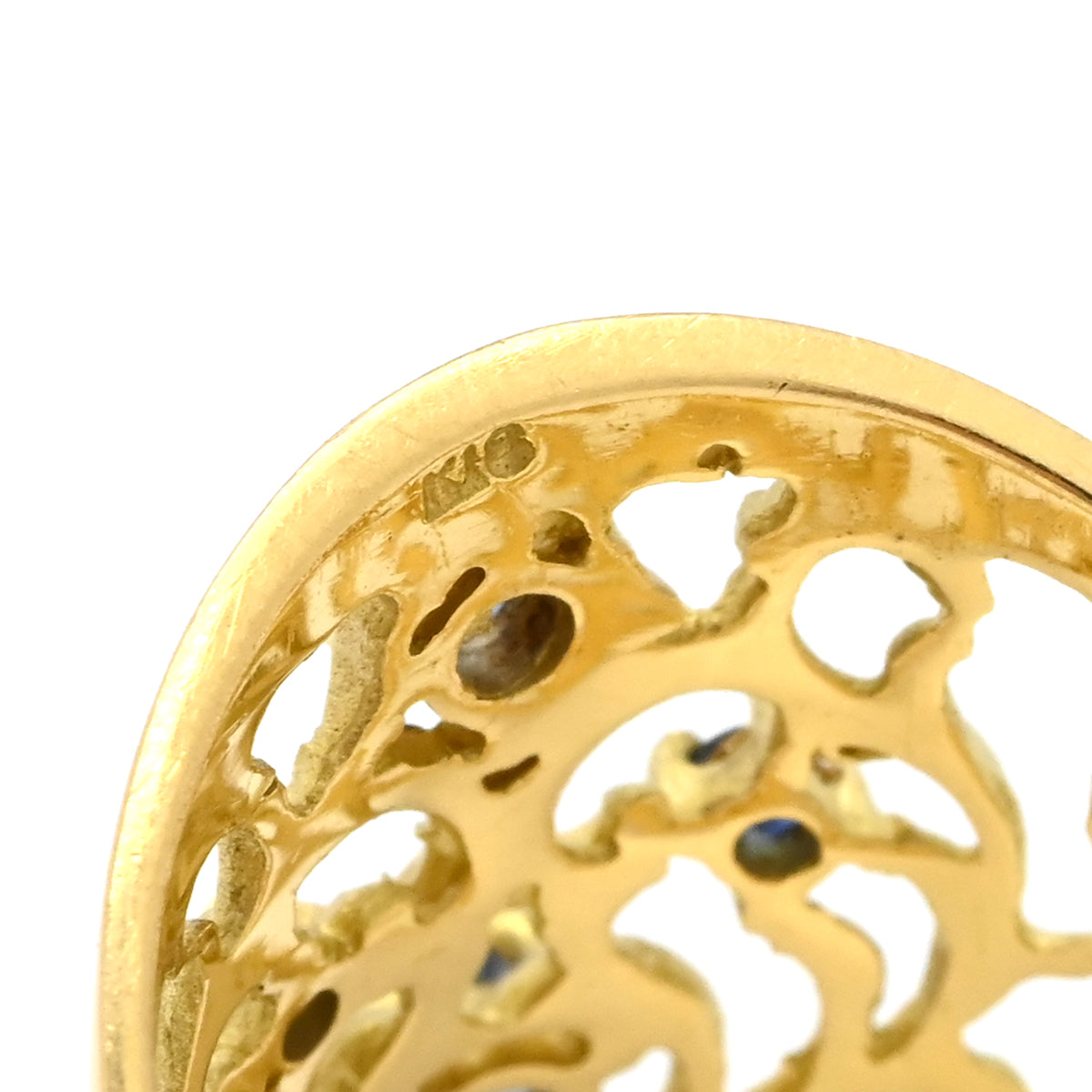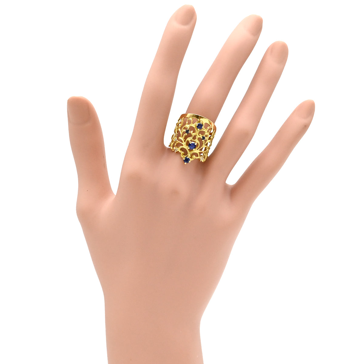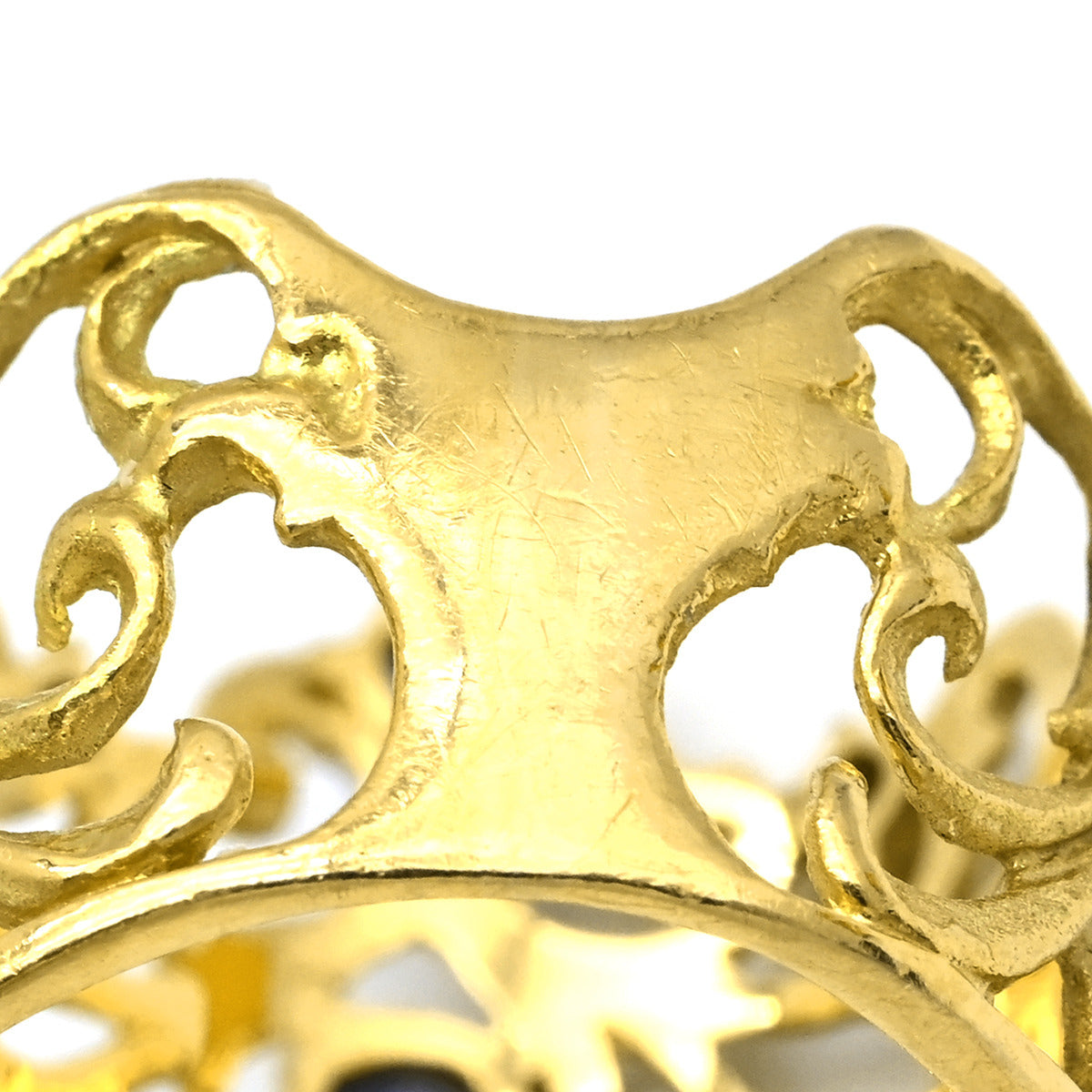 ノンブランド NON BRAND ブルーサファイア ダイヤ イエローゴールド K18YG サファイア ダイヤモンド リング 指輪 Au750 18K 18金 アンティークジュエリー 透かし彫り 14号