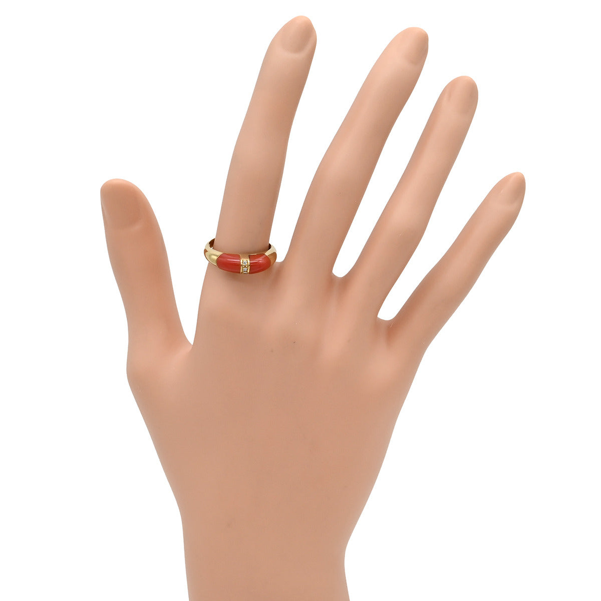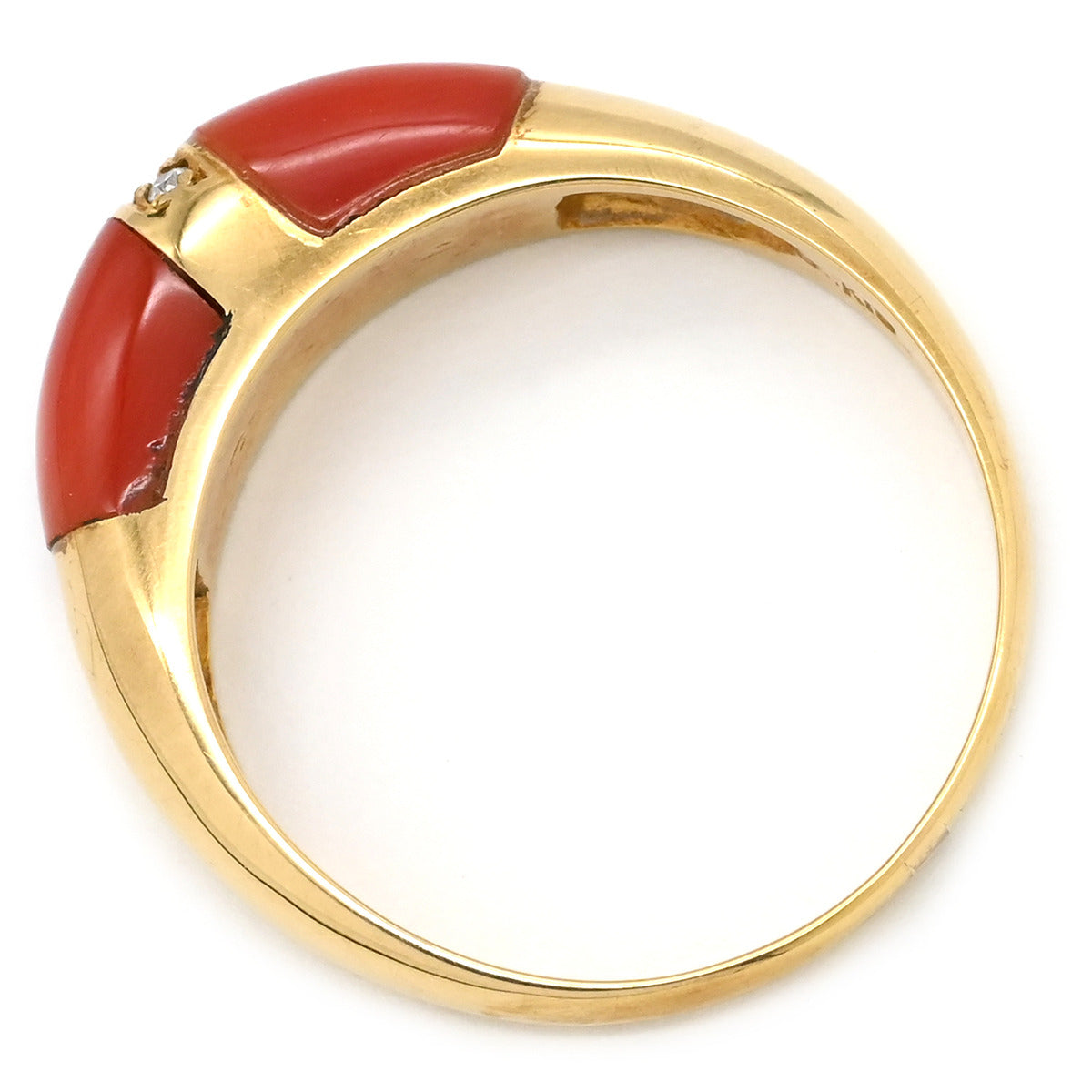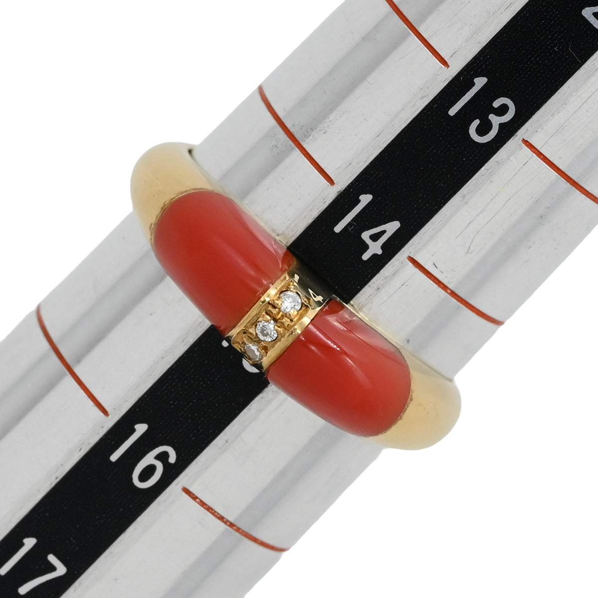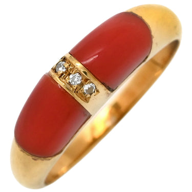 ノンブランド NON BRAND 珊瑚 ダイヤリング イエローゴールド リング 指輪 赤 サンゴ 15号