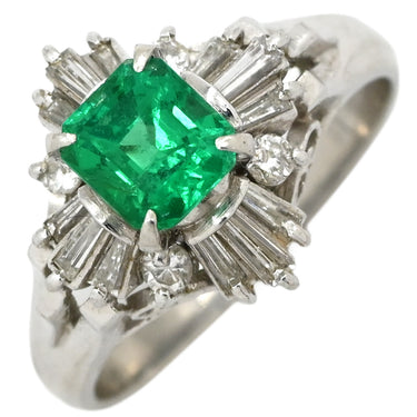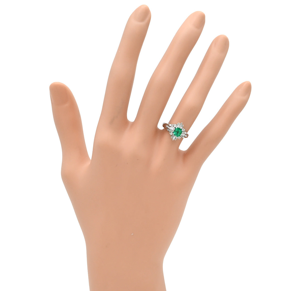 ノンブランド NON BRAND エメラルド ダイヤ リング プラチナシルバー Pt900 エメラルド ダイヤモンド リング 指輪 グリーン 緑 7.5号
