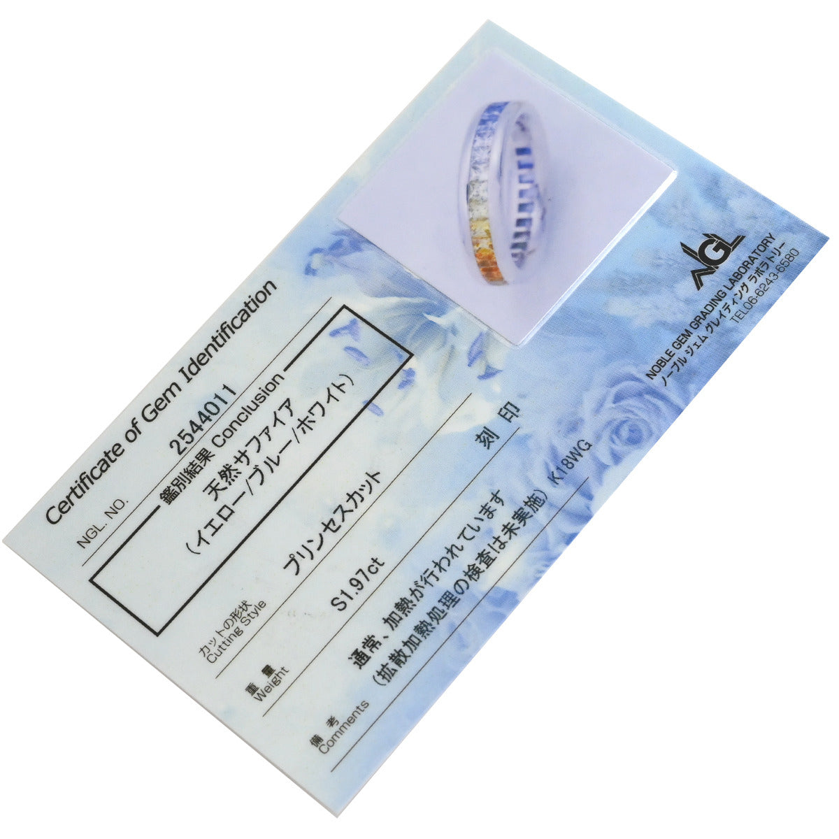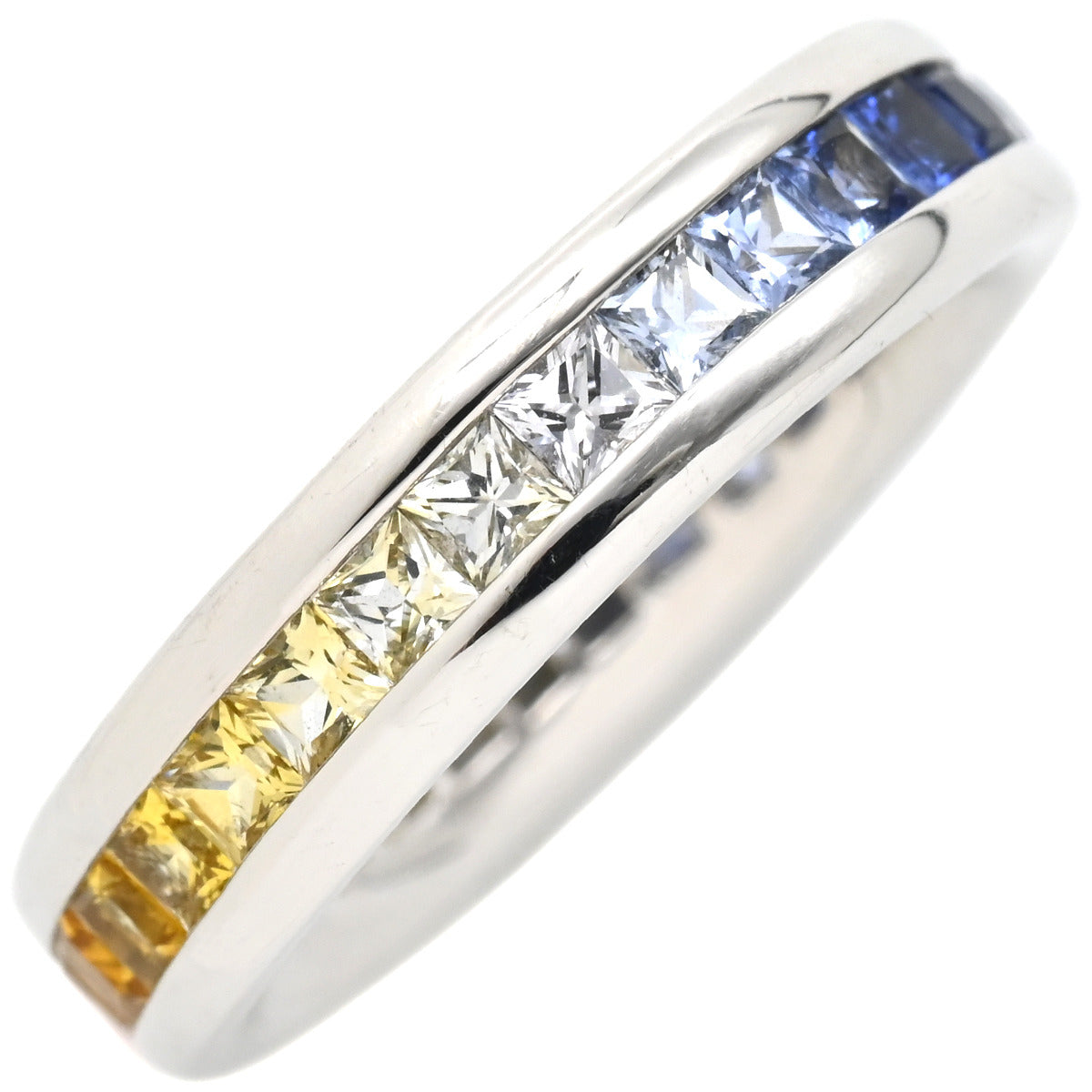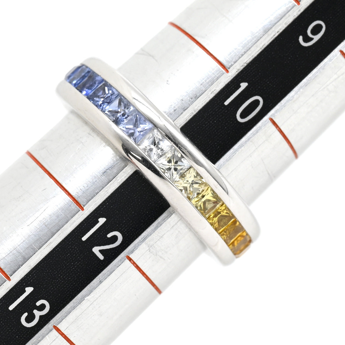 ノンブランド NON BRAND サファイアリング ホワイトゴールド×イエロー×ブルー×ホワイト リング 指輪 Au750 18K 18金 イエロー ブルー ホワイト カラーストーン 11号