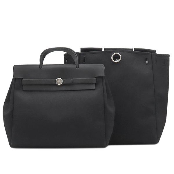 エルメス HERMES エールバッグ アドPM ブラック トワルオフィシエ ヴァッシュハンター 2WAYバッグ マットシルバー金具 黒 リュック バックパック ストッパー欠品
