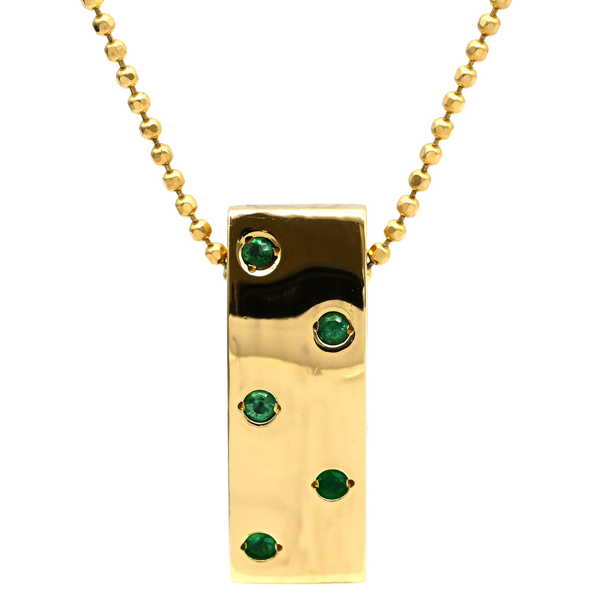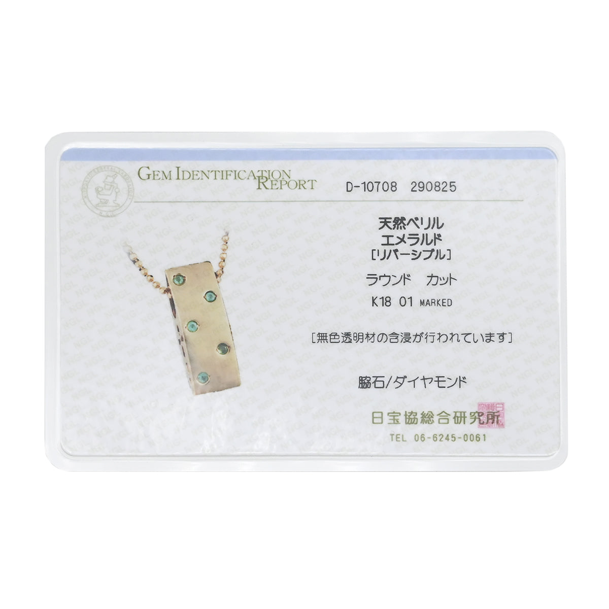 ノンブランド NON BRAND エメラルド ダイヤ イエローゴールド ネックレス 750 18K ボールチェーン リバーシブル