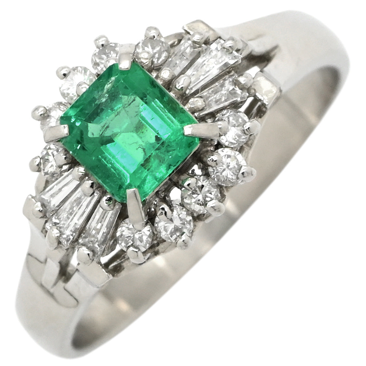 ノンブランド NON BRAND エメラルド ダイヤモンド リング プラチナシルバー リング 指輪 グリーン 緑 スクエア 11号