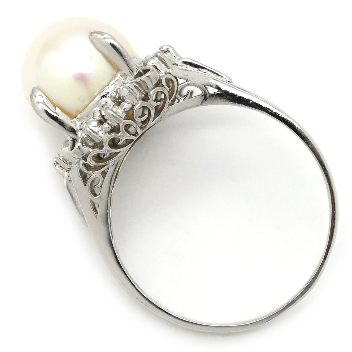 ノンブランド NON BRAND アコヤパール ダイヤリング プラチナシルバー リング 指輪 1粒 1P 14号
