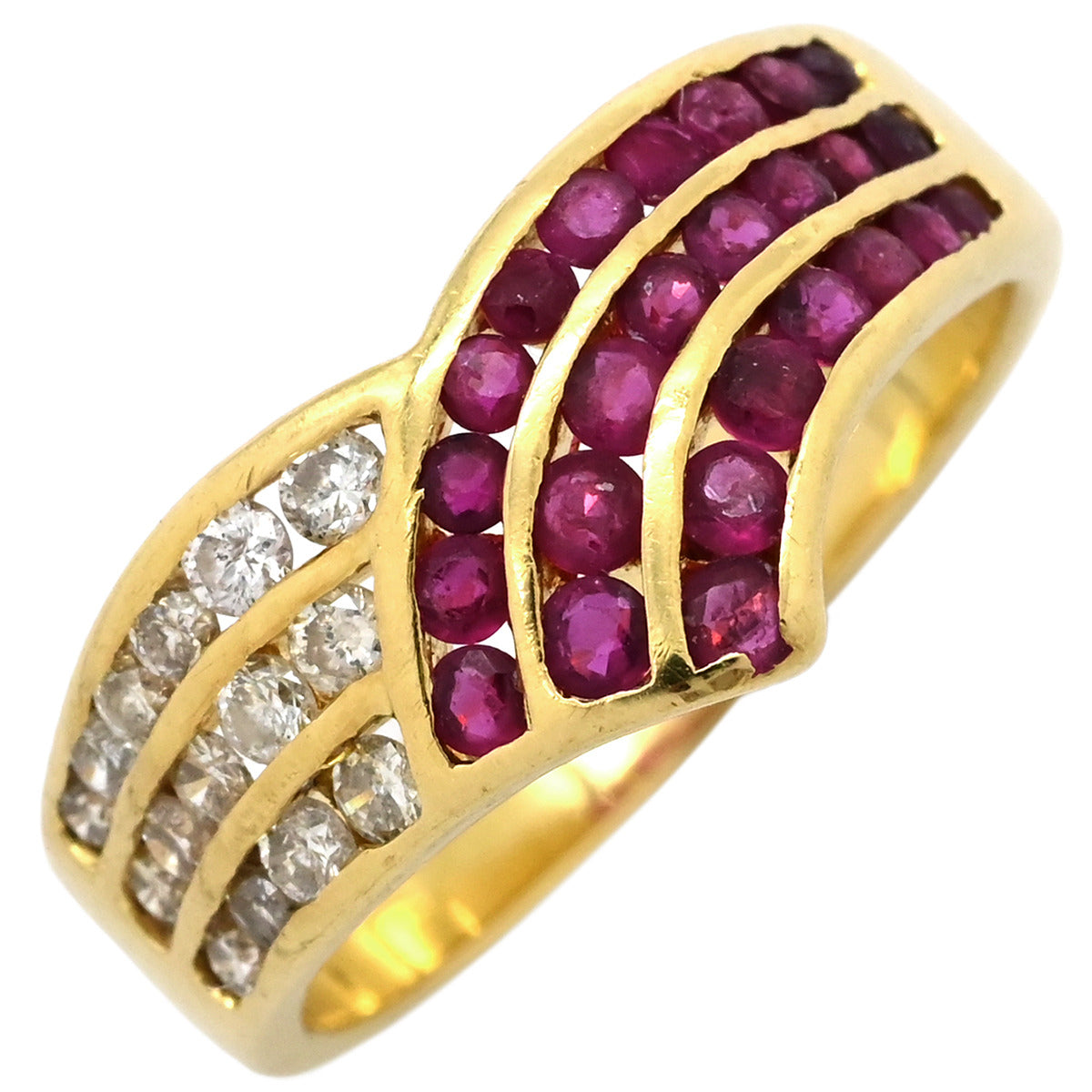 ノンブランド NON BRAND ルビー ダイヤ リング イエローゴールド リング 指輪 Au750 18K 18金 レッド 赤 10.5号