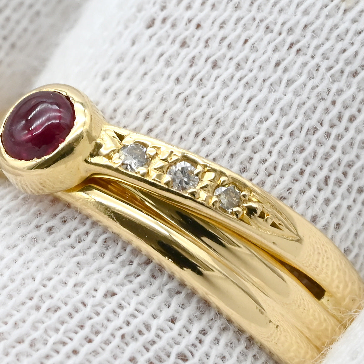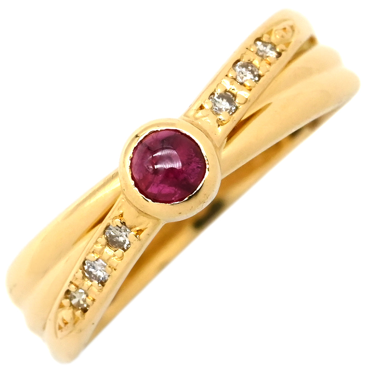 ノンブランド NON BRAND ルビー ダイヤリング イエローゴールド×レッド K18YG ダイヤモンド ルビー リング 指輪 Au750 18K 18金 13号