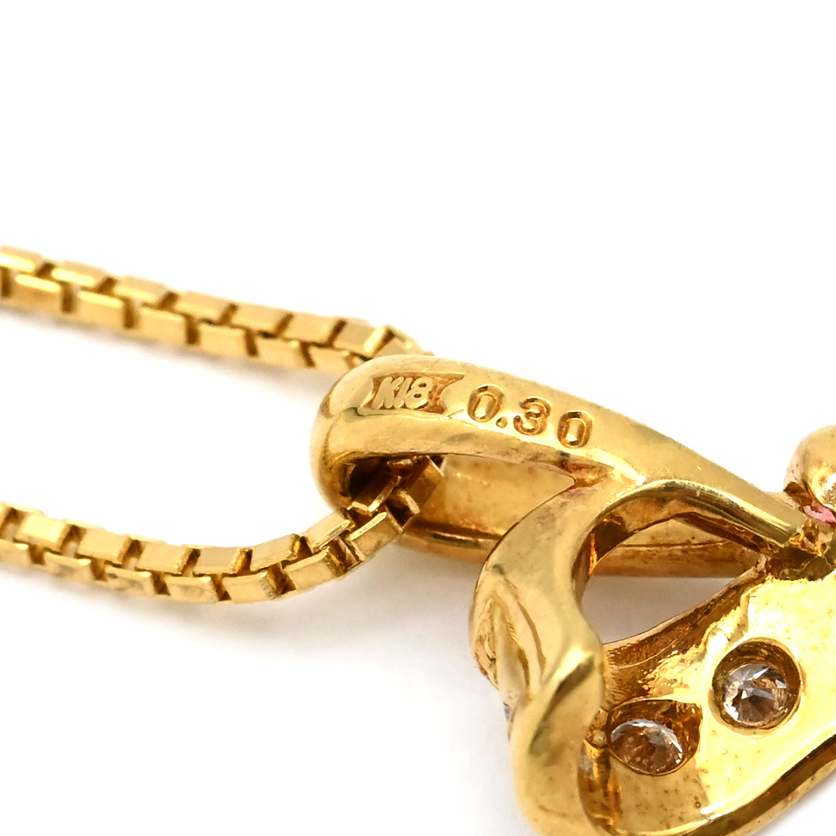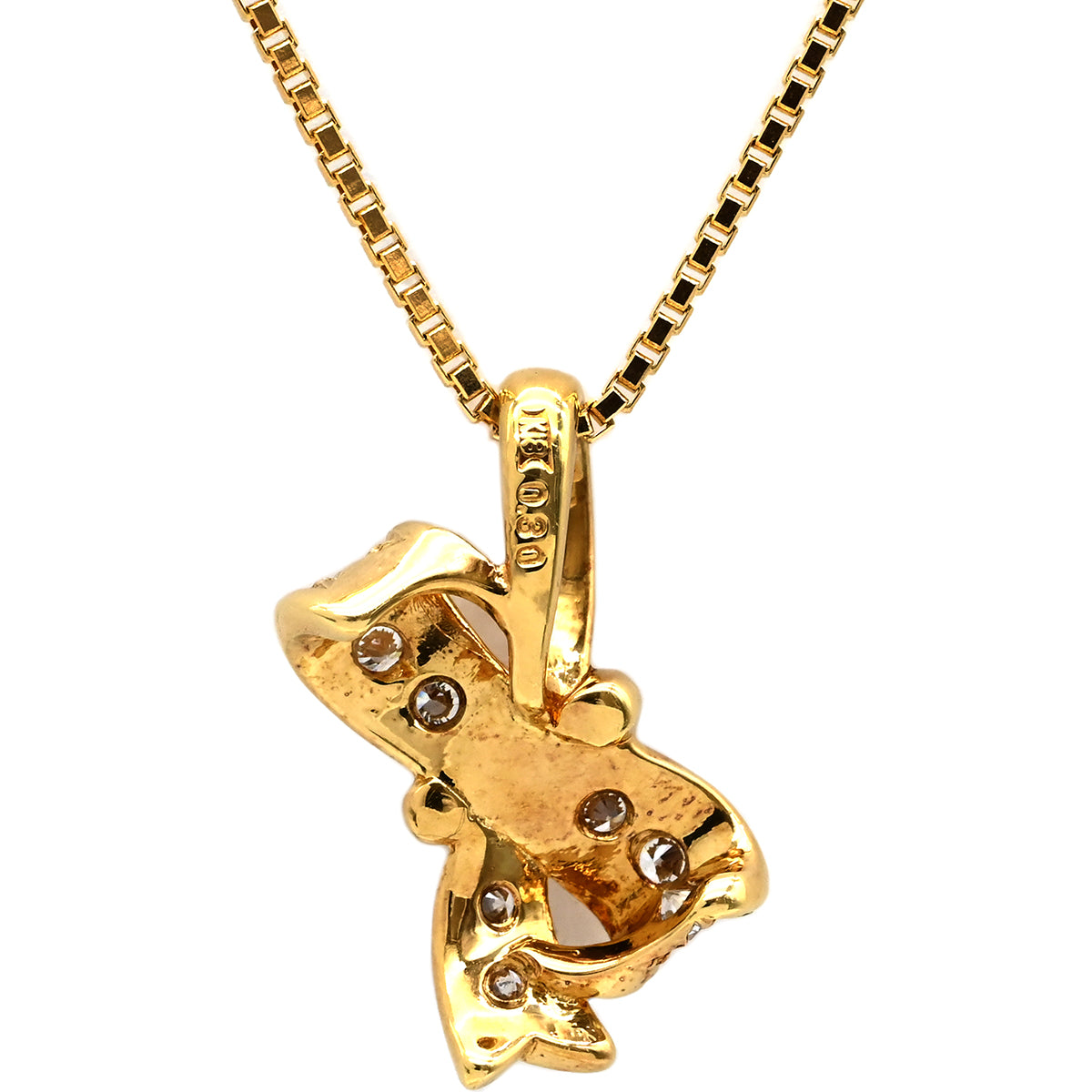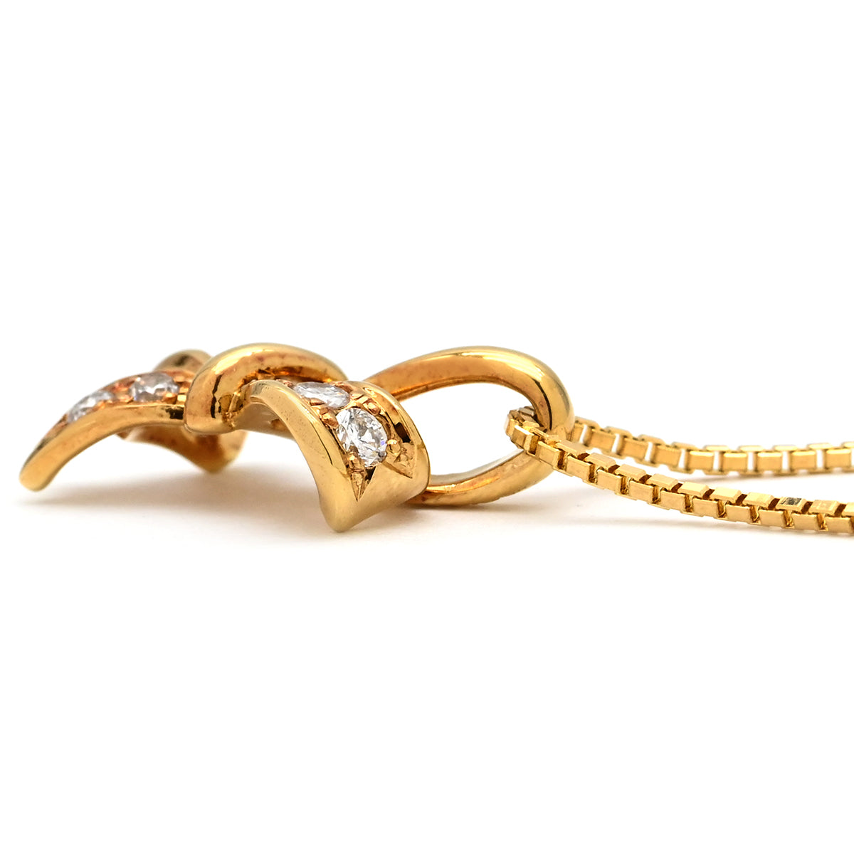 ノンブランド NON BRAND リボンモチーフ ダイヤペンダント イエローゴールド ネックレス 750 18K