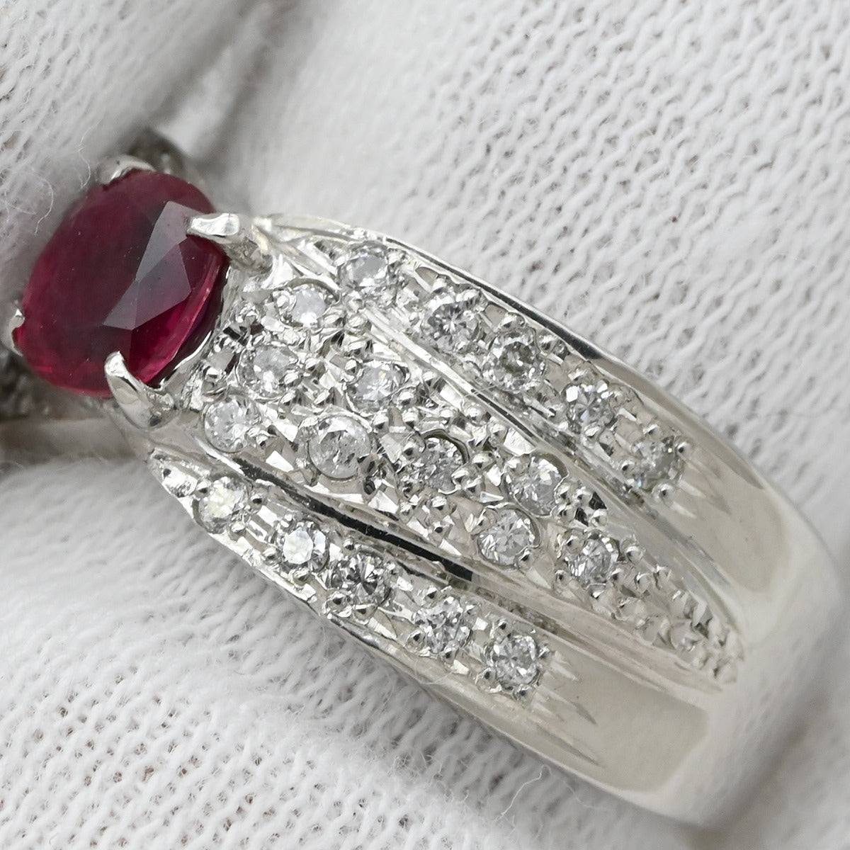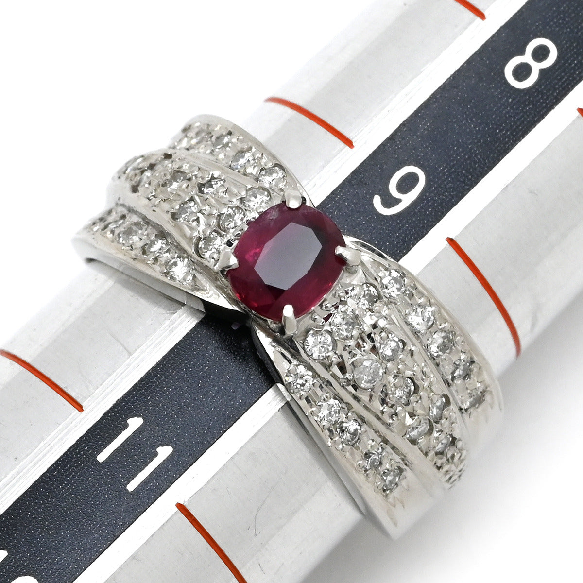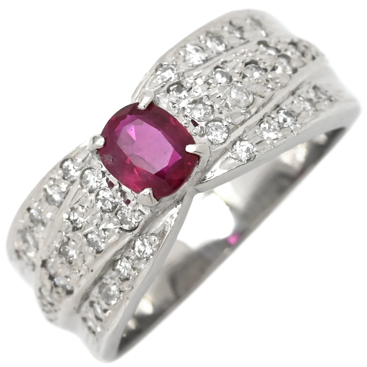 ノンブランド NON BRAND ルビー ダイヤリング プラチナシルバー リング 指輪 レッド 赤 10号