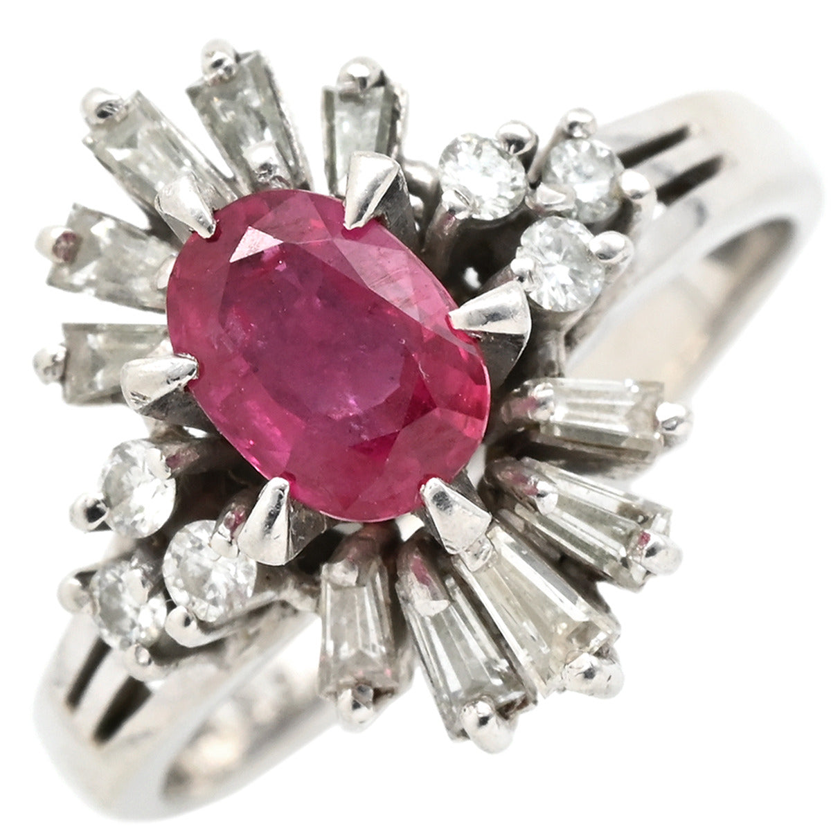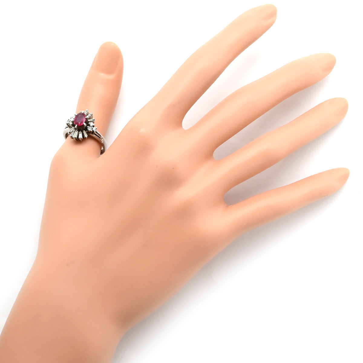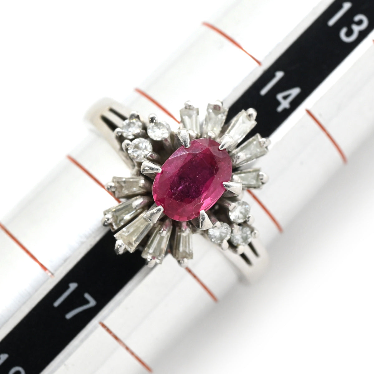 ノンブランド NON BRAND ルビー ダイヤリング プラチナシルバー リング 指輪 レッド 赤 15.5号