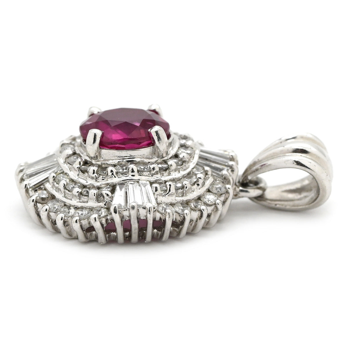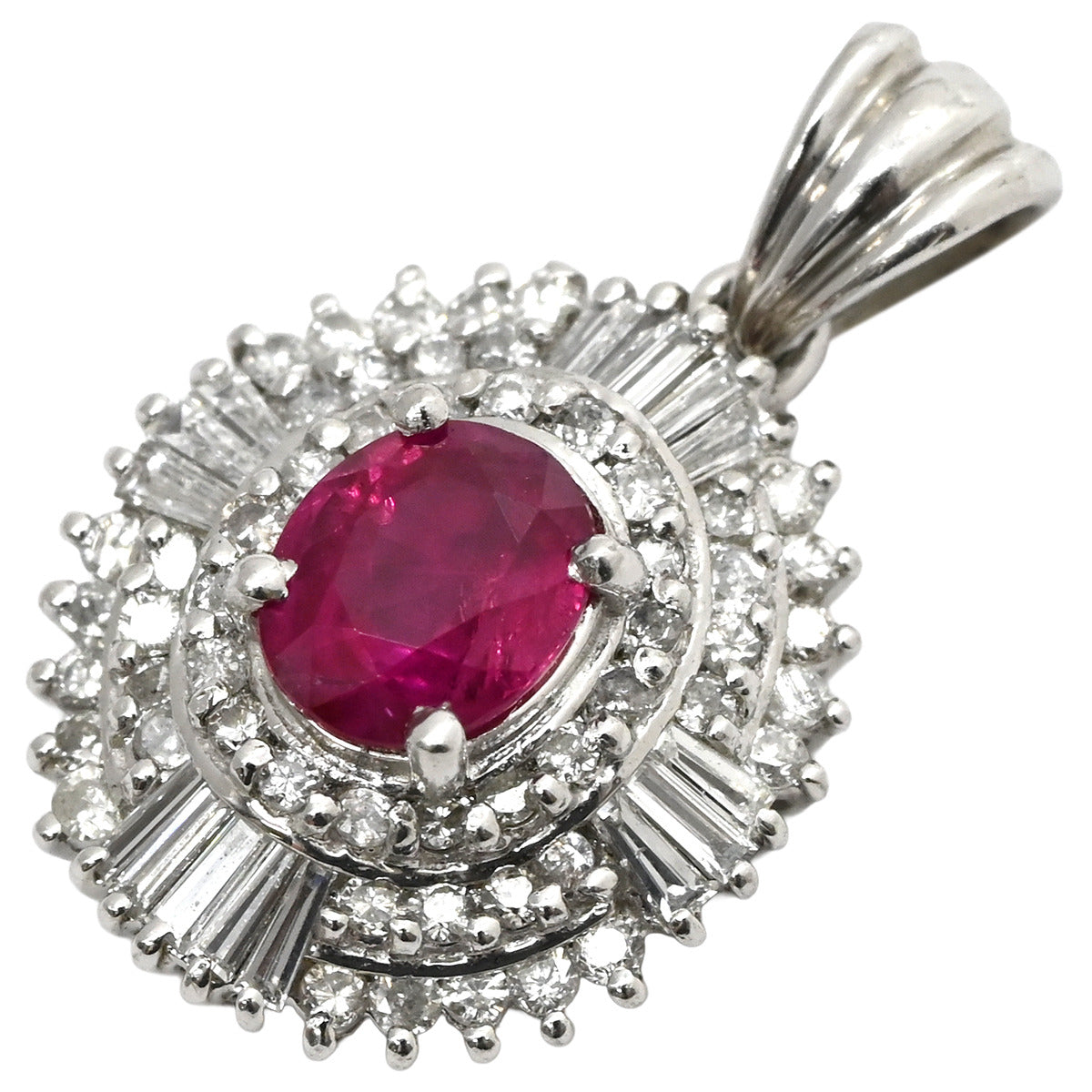 ノンブランド NON BRAND ルビー ダイヤ レッド×プラチナシルバー ペンダントトップ ネックレストップ パヴェダイヤ オーバル プラチナム
