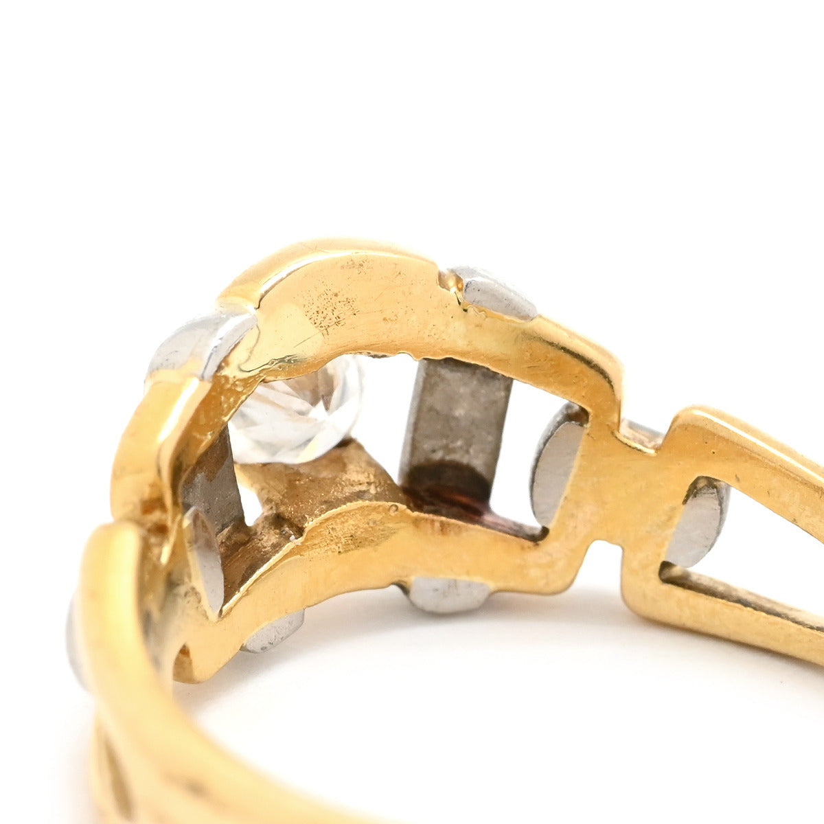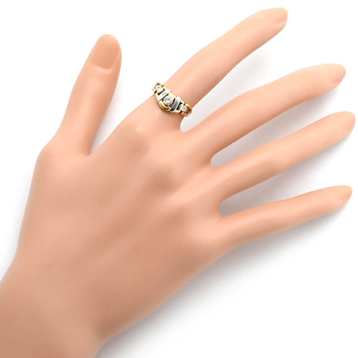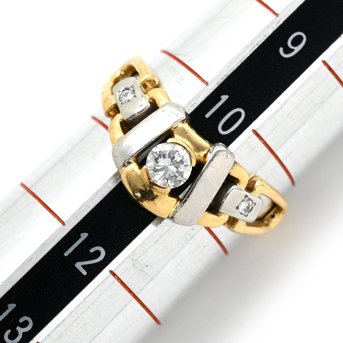 ノンブランド NON BRAND ダイヤリング イエローゴールド×プラチナシルバー K18YG Pt900 ダイヤモンド リング 指輪 Pt900 イエローゴールド プラチナ コンビ 3P 3粒 ダイヤ 10.5号