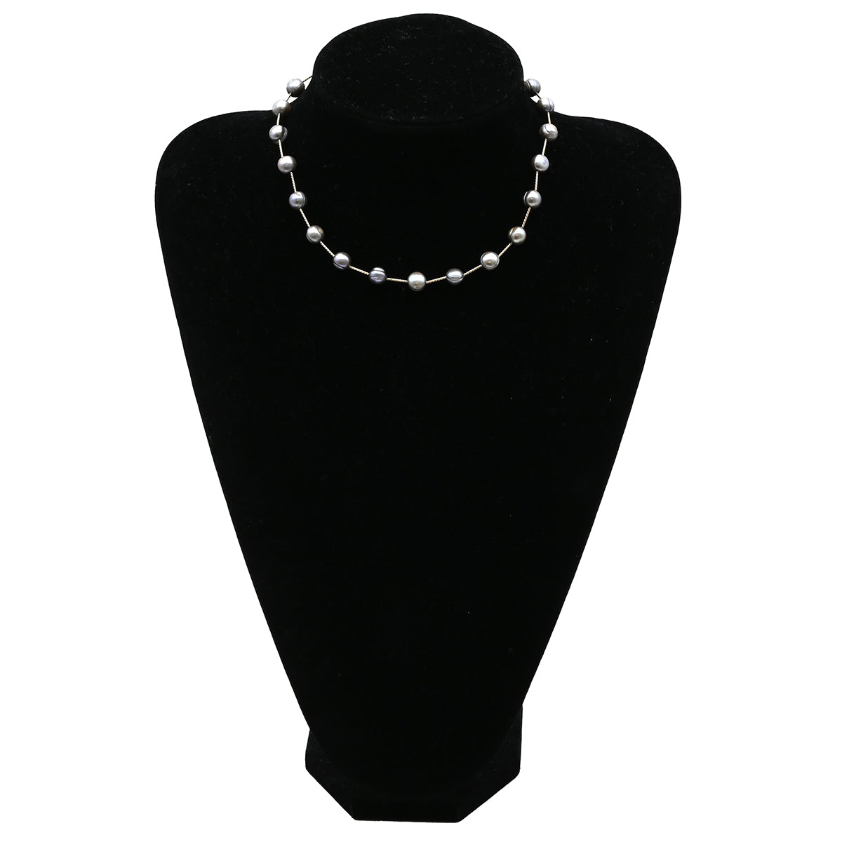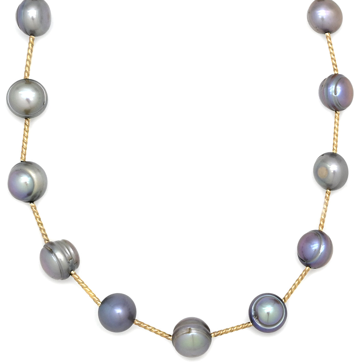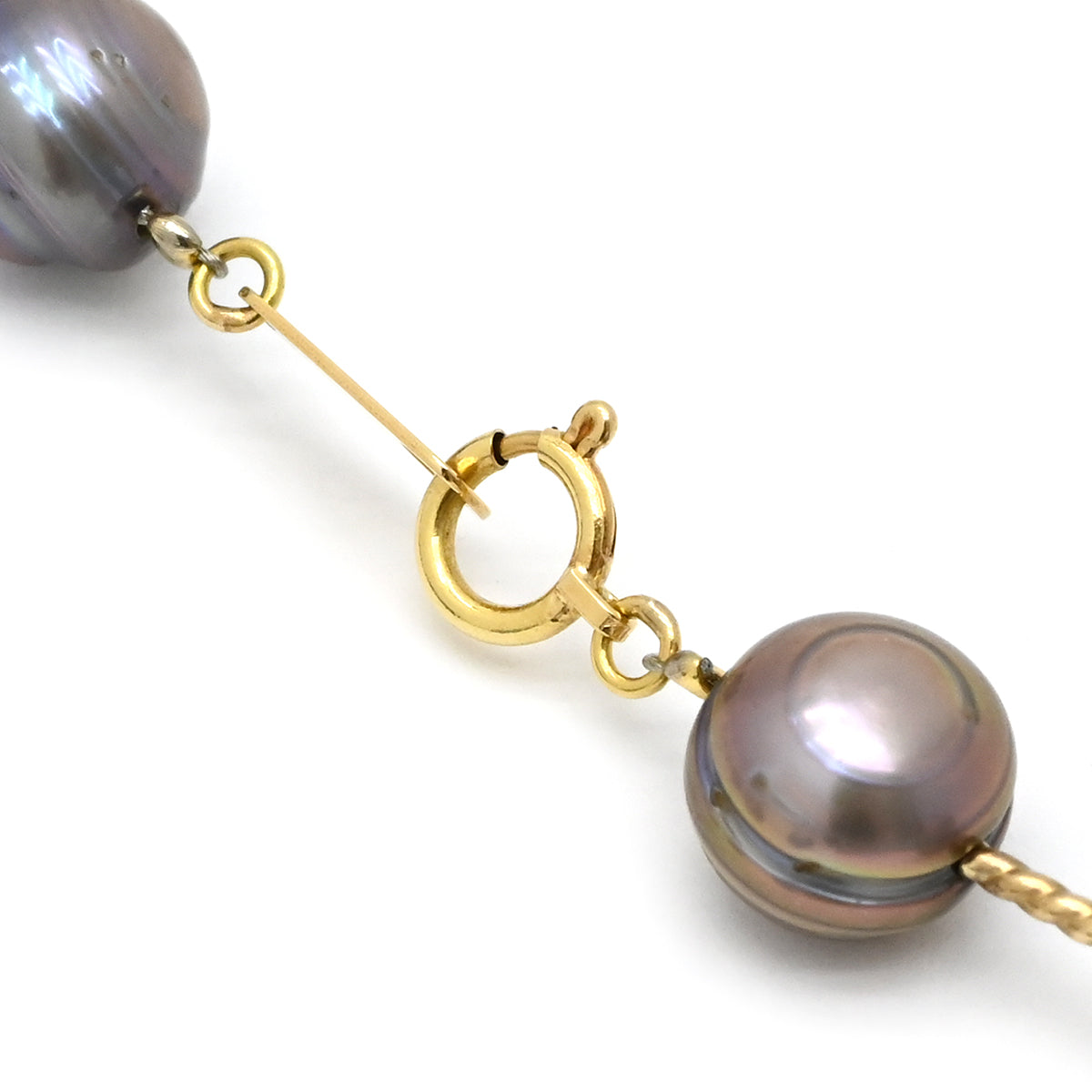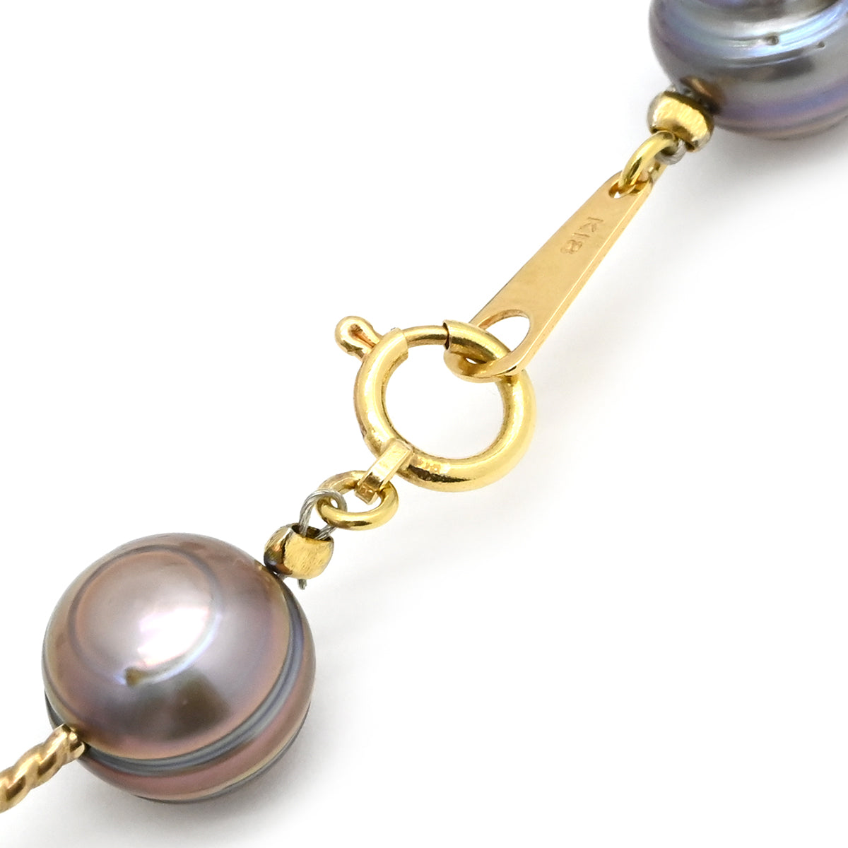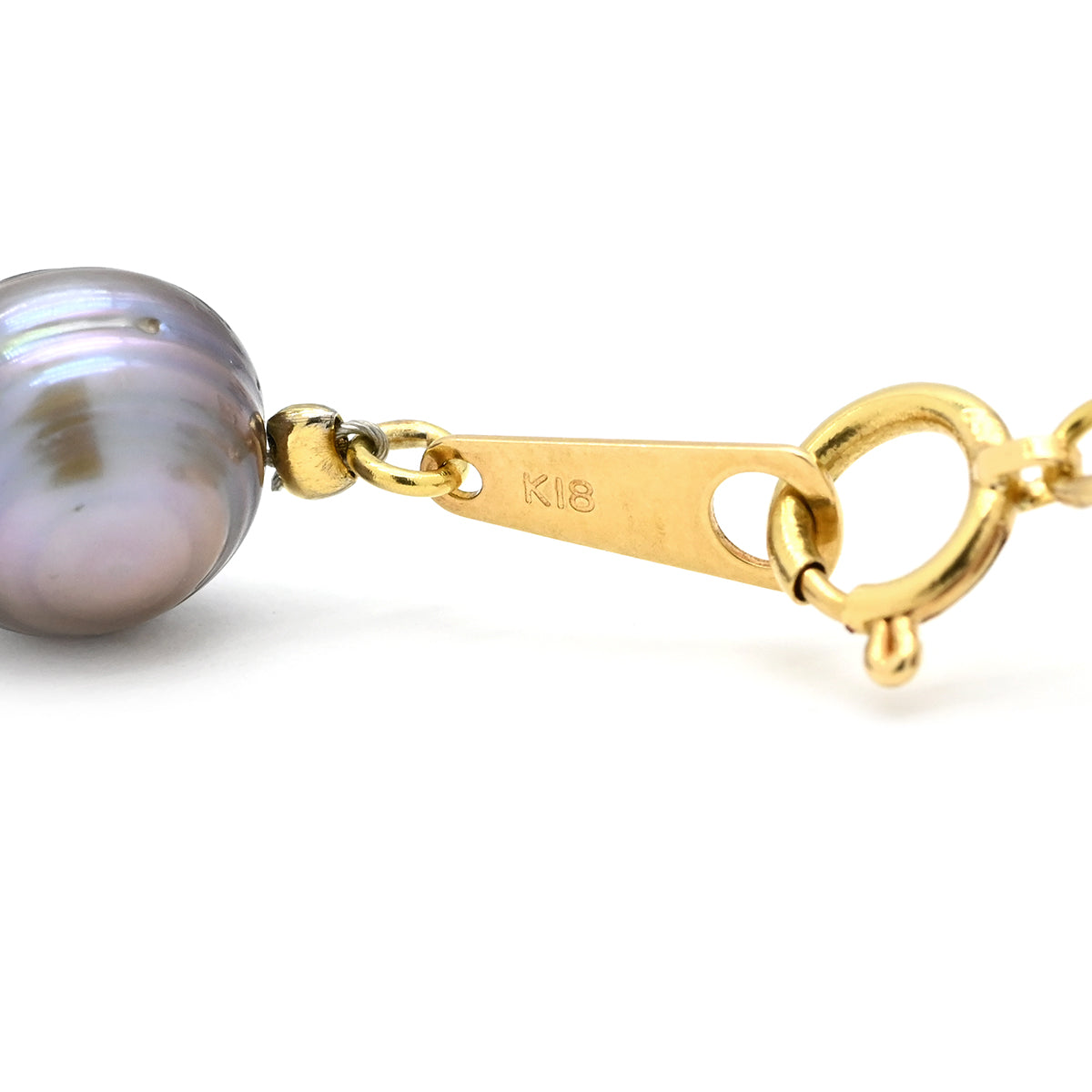 ノンブランド NON BRAND ステーションネックレス ホワイトゴールド ネックレス 淡水パール 真珠 750 ホワイトゴールド シルバーグレー パール