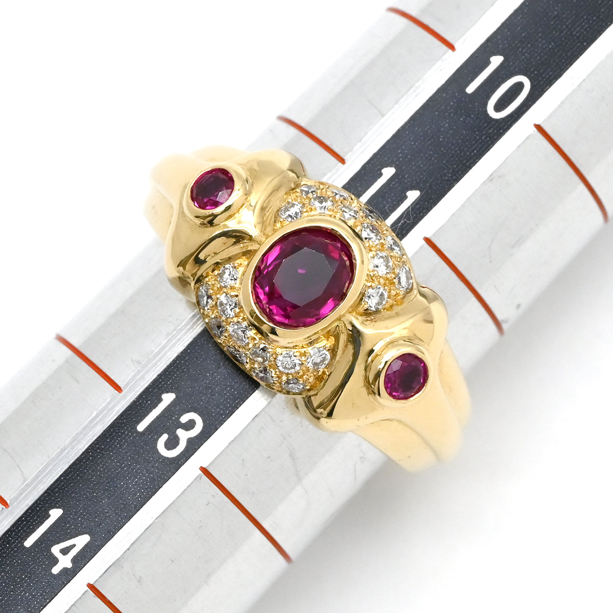 ノンブランド NON BRAND ルビー ダイヤリング イエローゴールド リング 指輪 レッド 赤 12号