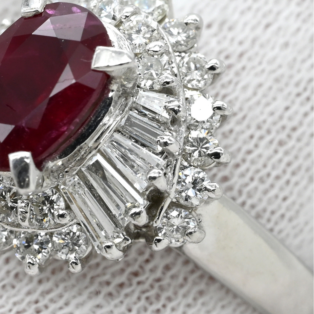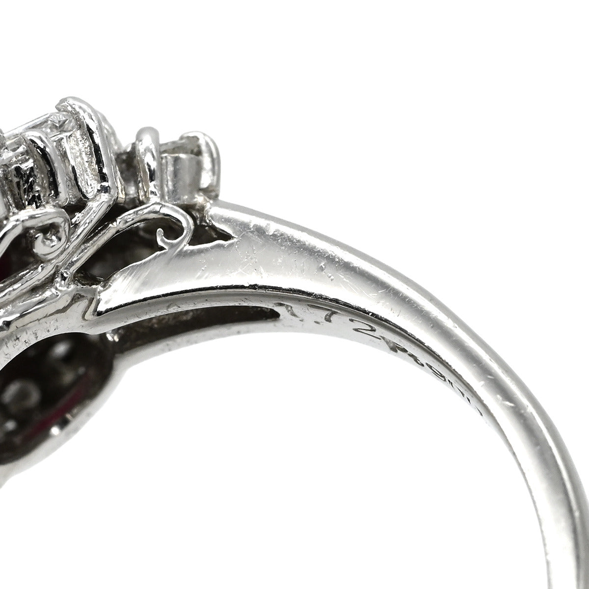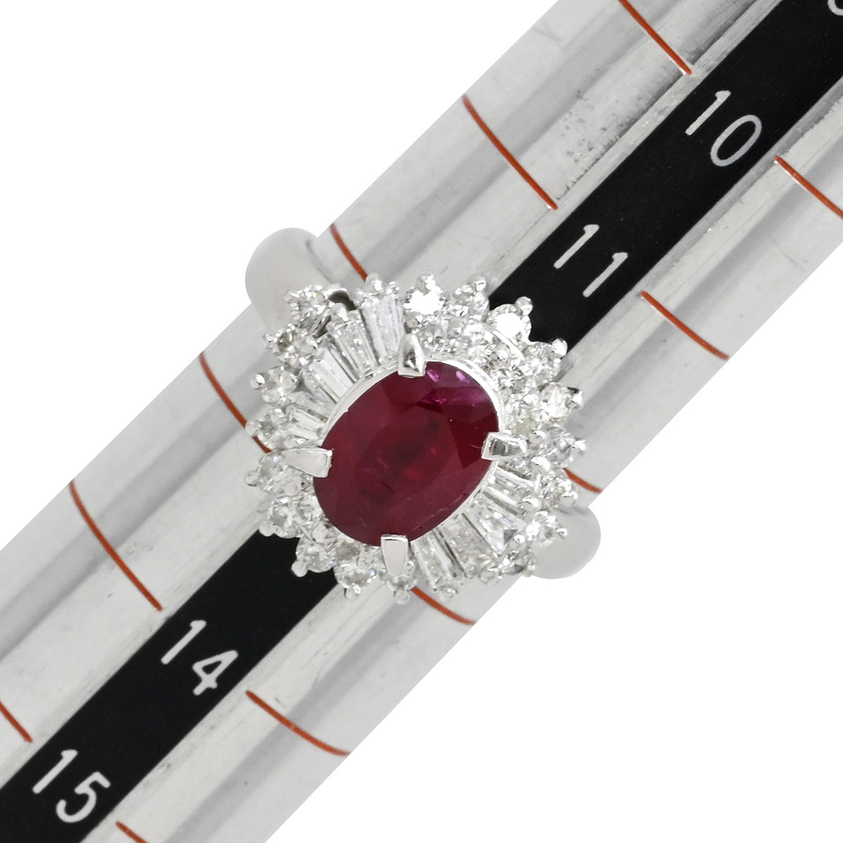 ノンブランド NON BRAND ルビー ダイヤリング プラチナシルバー リング 指輪 レッド 赤 プラチナム ヘイローデザイン 9.5号