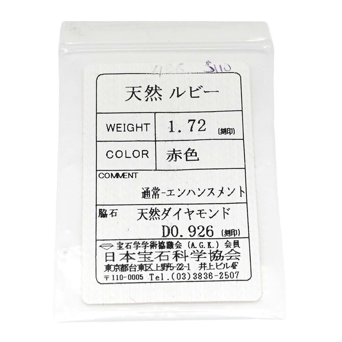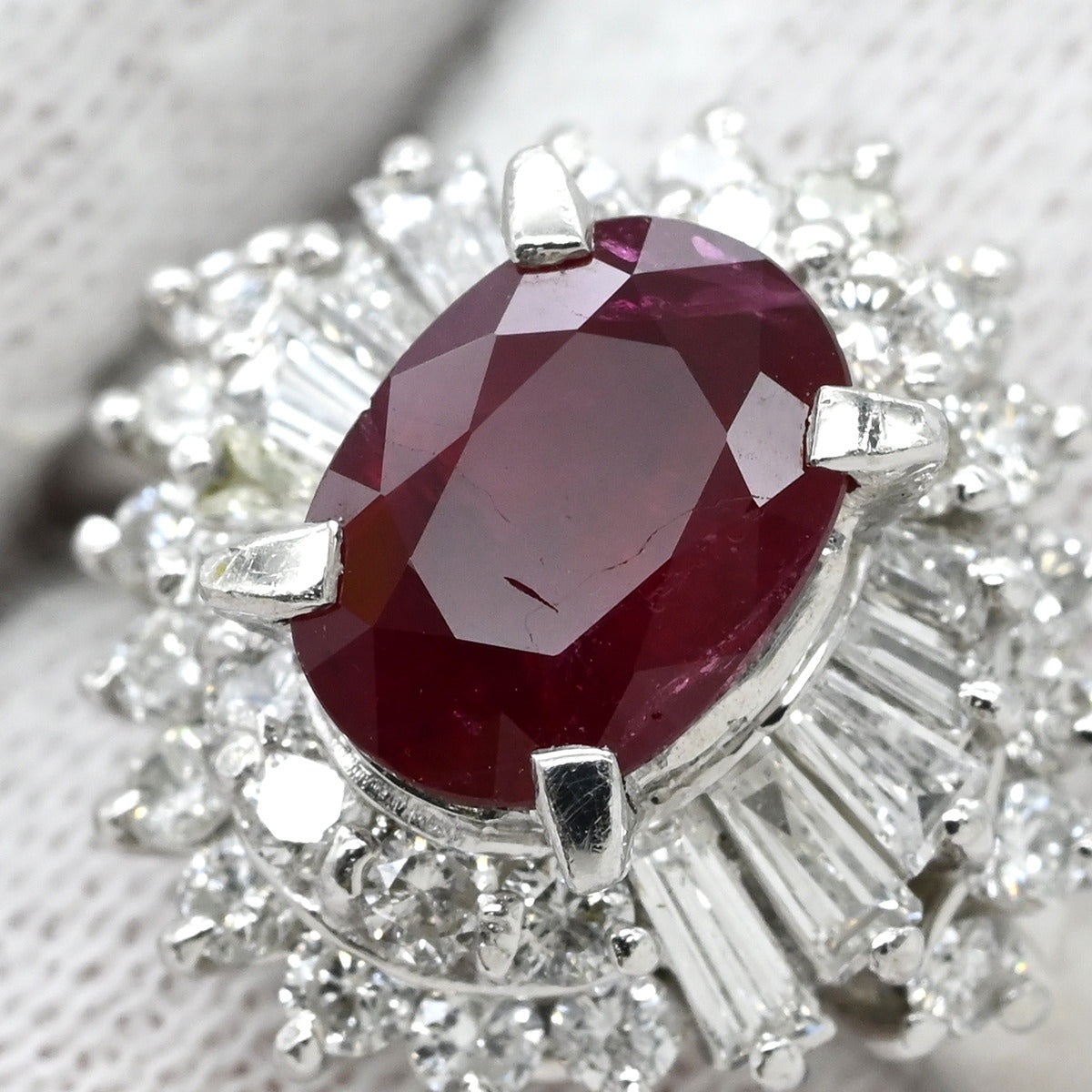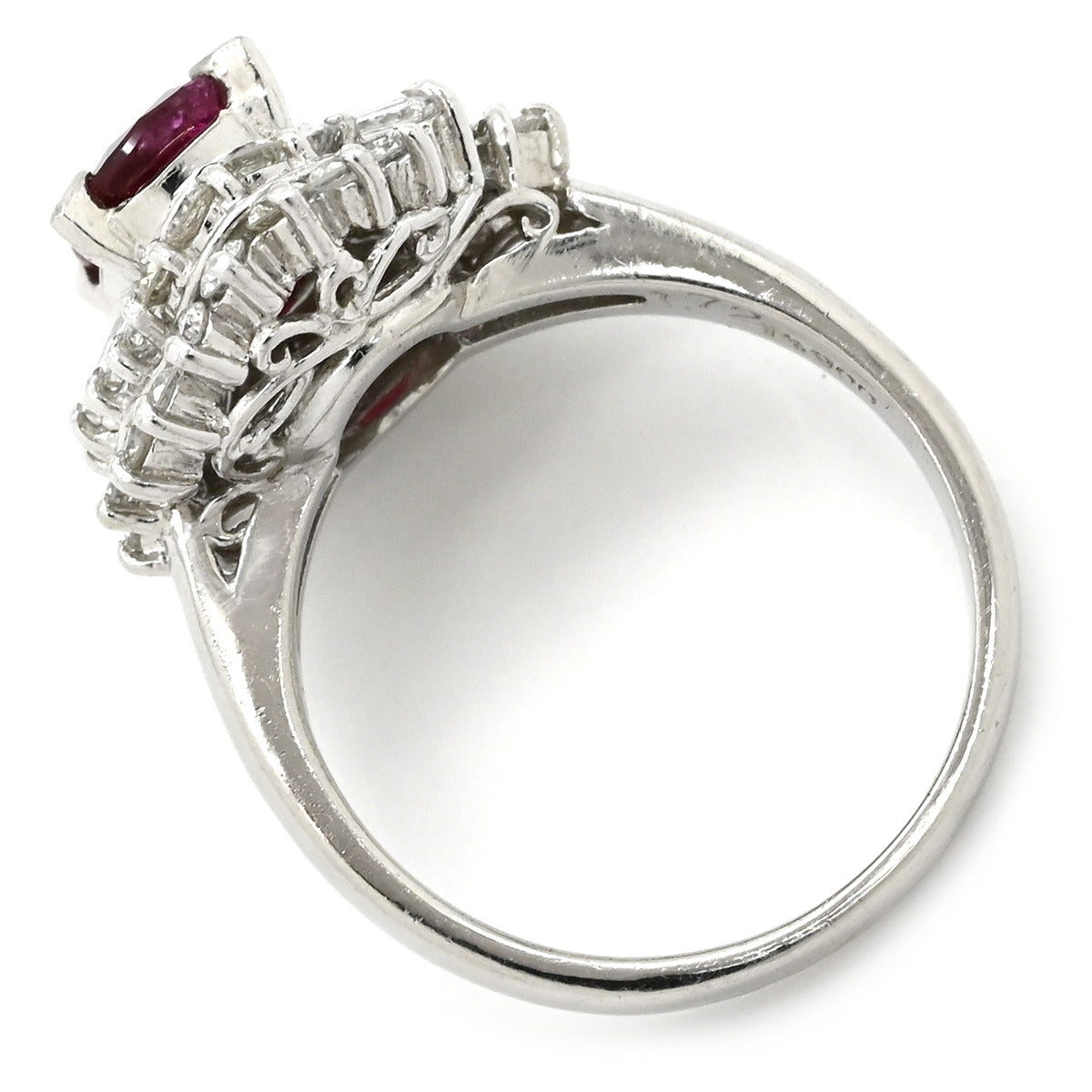 ノンブランド NON BRAND ルビー ダイヤリング プラチナシルバー リング 指輪 レッド 赤 プラチナム ヘイローデザイン 9.5号