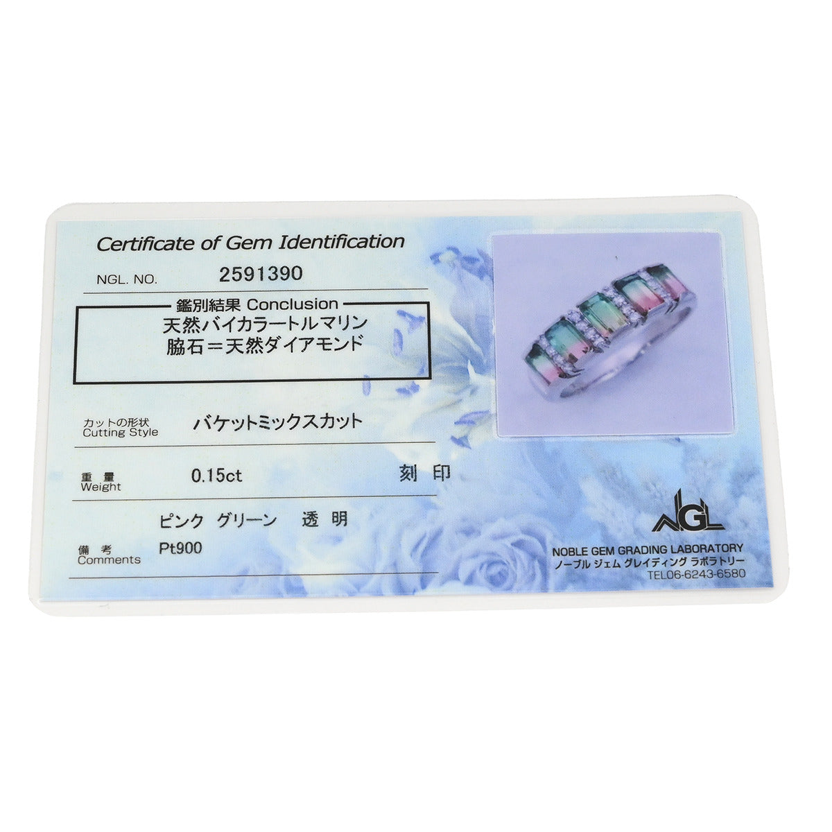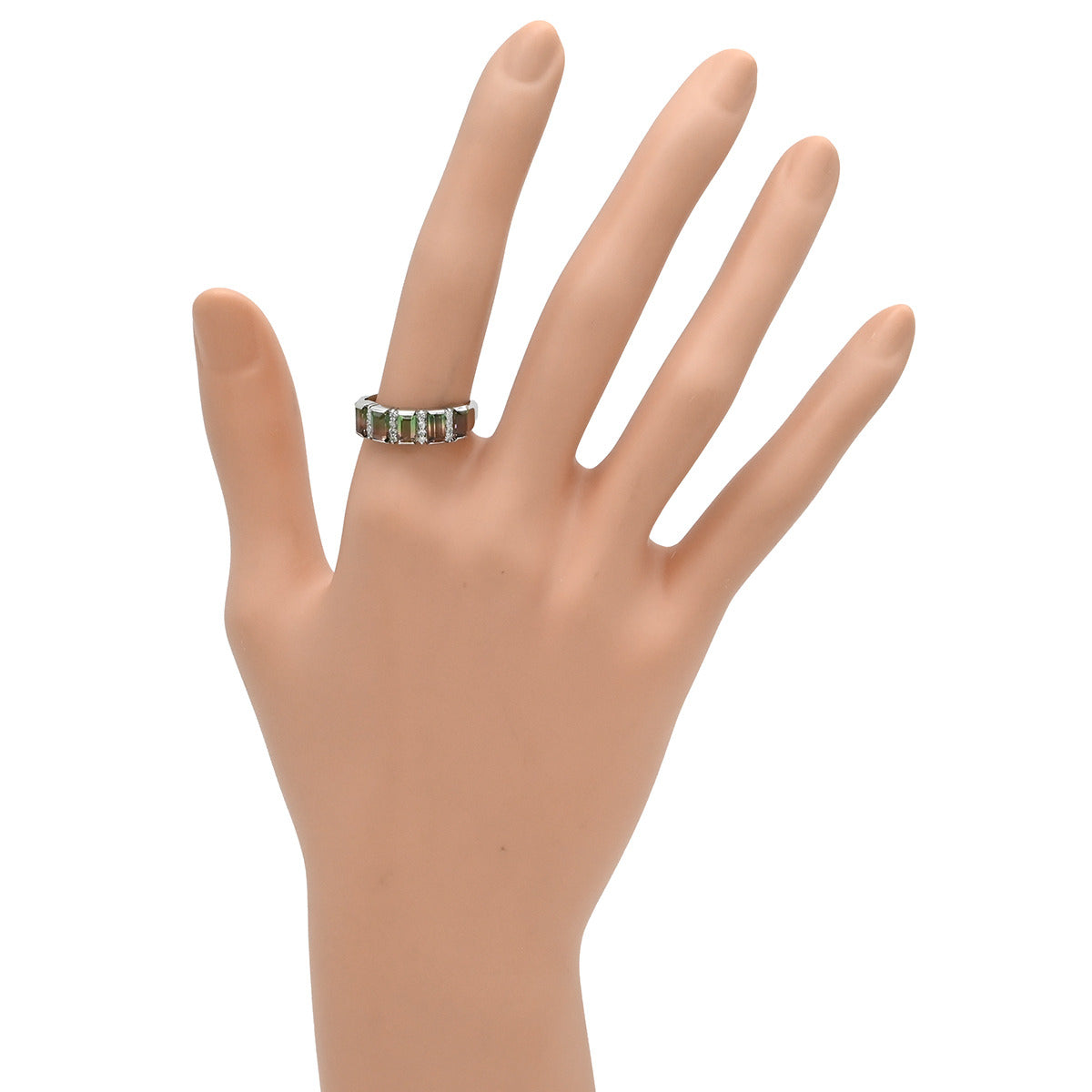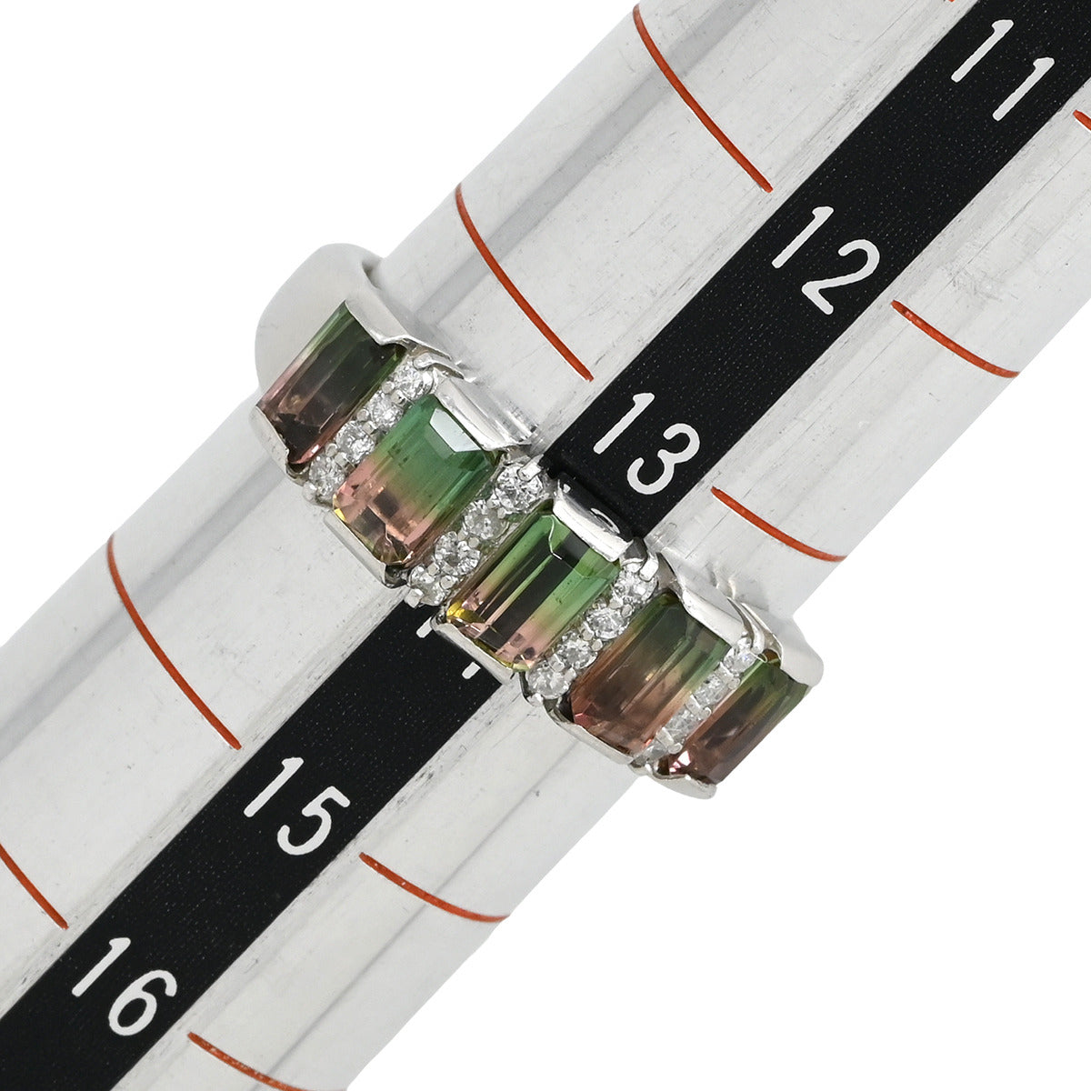 ノンブランド NON BRAND バイカラートルマリン ダイヤリング プラチナシルバー×ピンク×グリーン リング 指輪 ウォーターメロントルマリン 14号