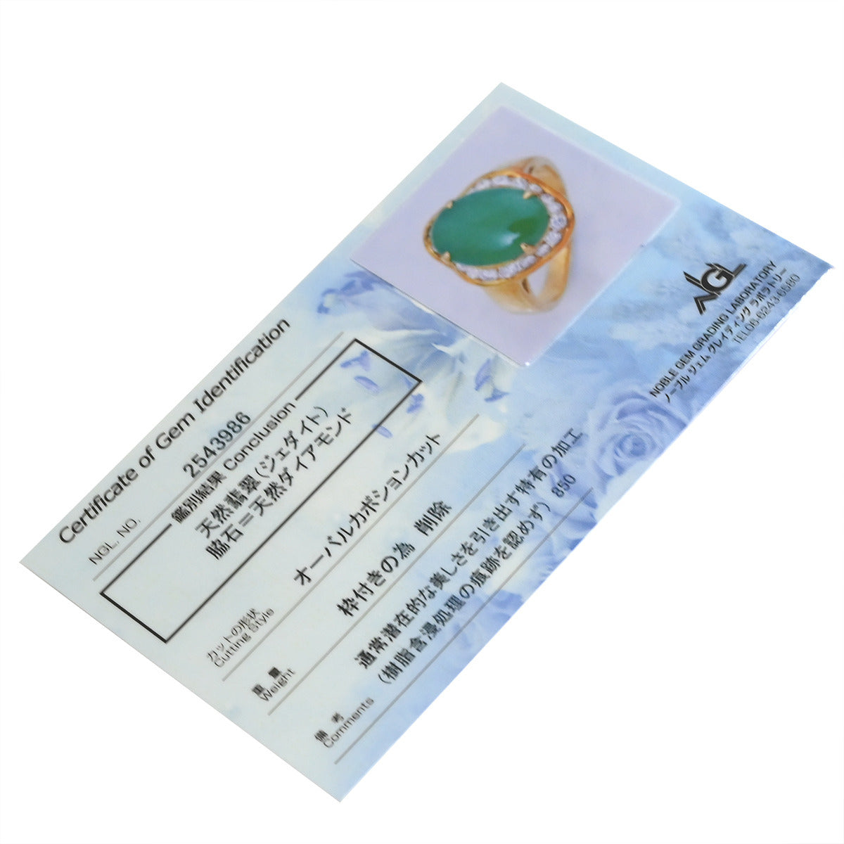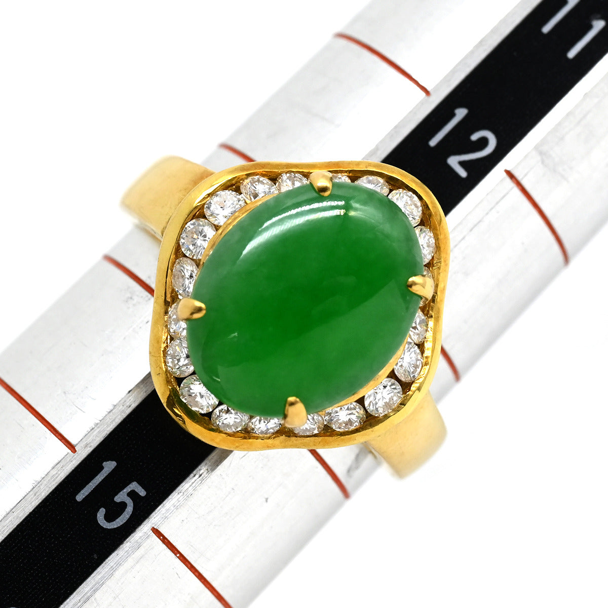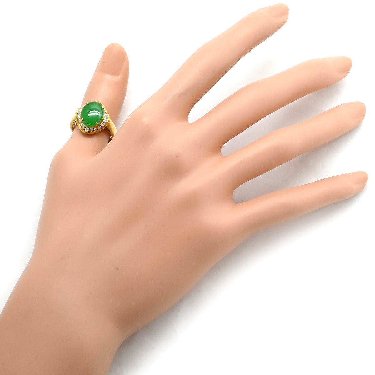 ノンブランド NON BRAND ヒスイ ダイヤリング イエローゴールド リング 指輪 翡翠 グリーン 緑 カボションカット 13.5号