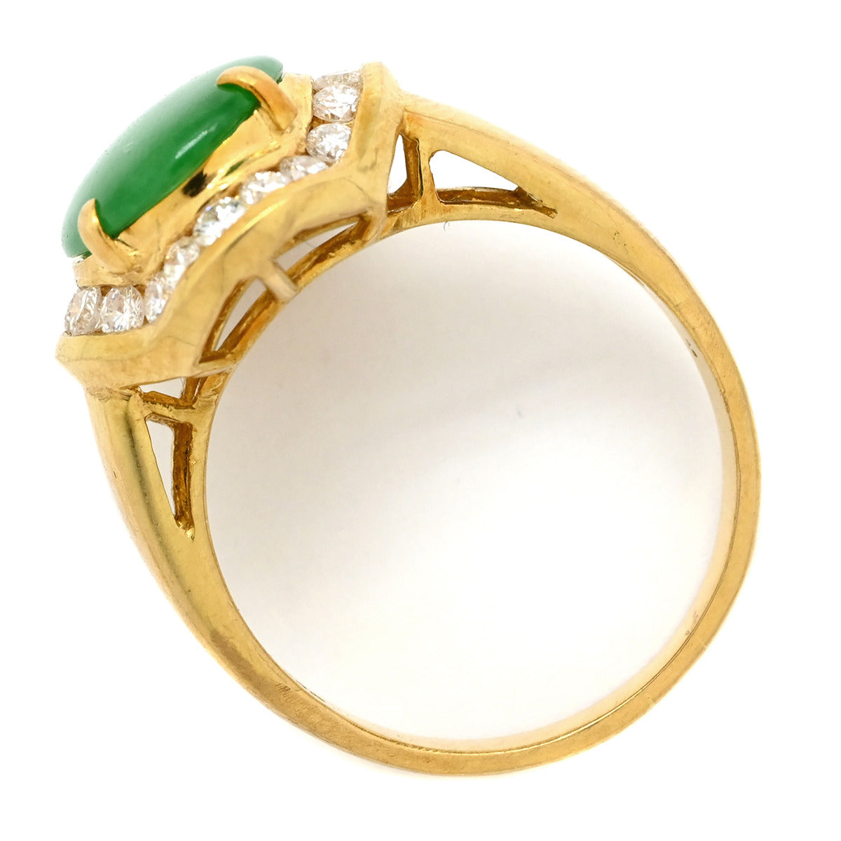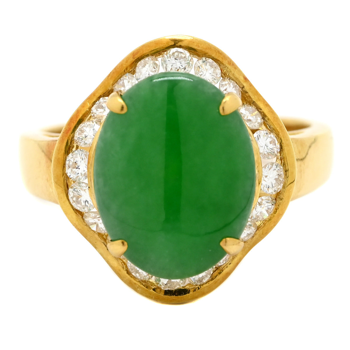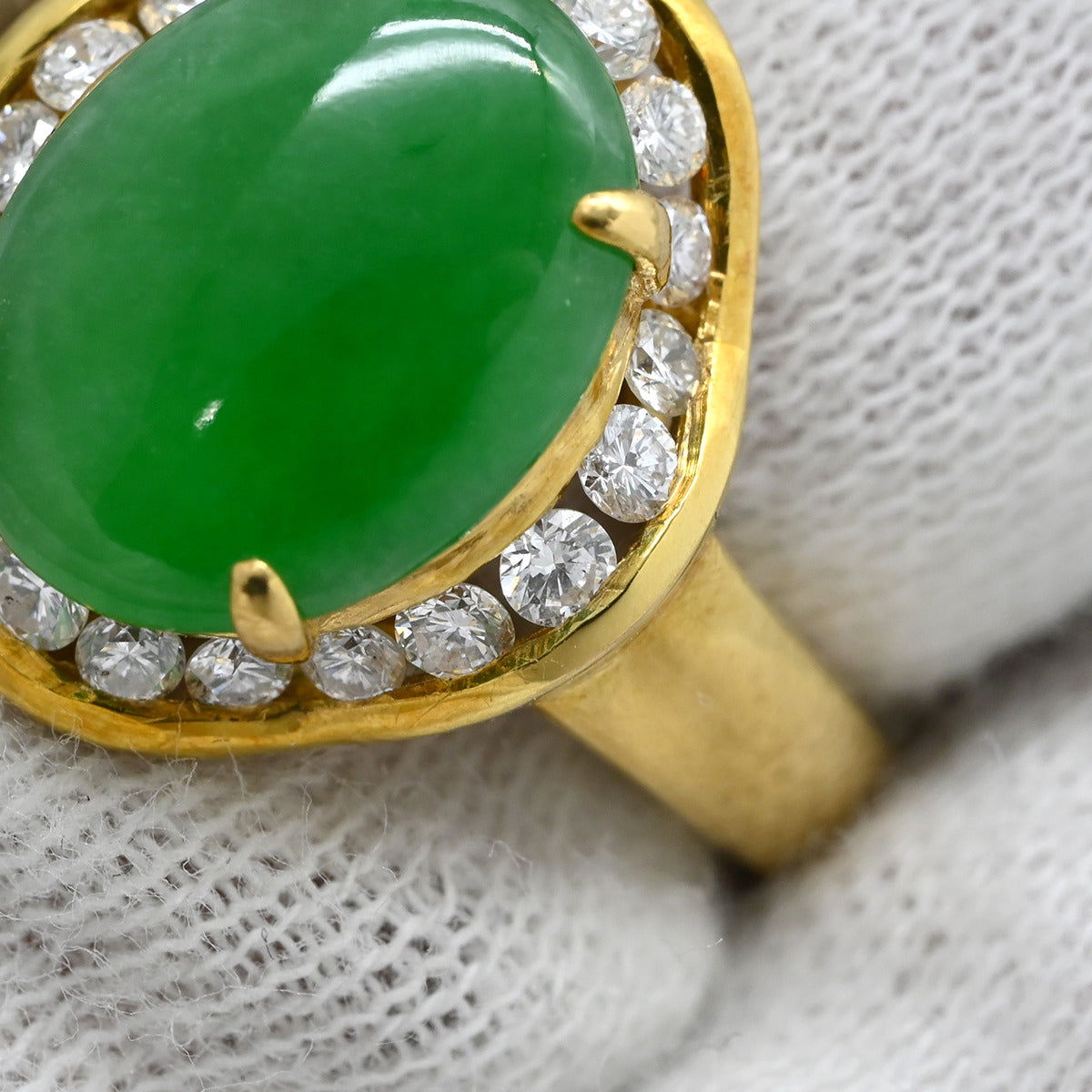 ノンブランド NON BRAND ヒスイ ダイヤリング イエローゴールド リング 指輪 翡翠 グリーン 緑 カボションカット 13.5号