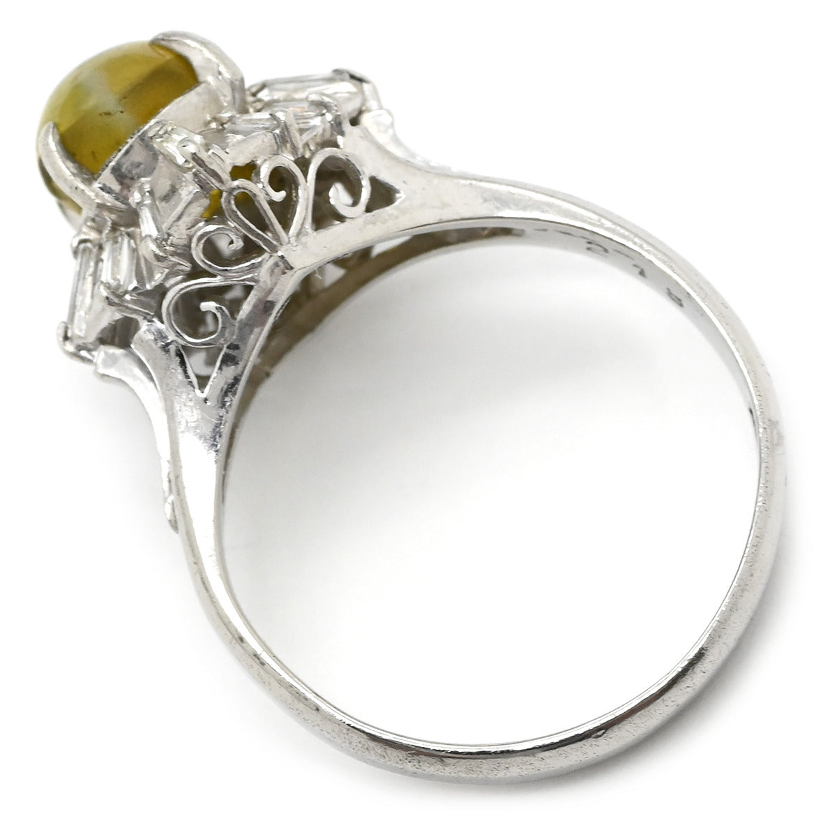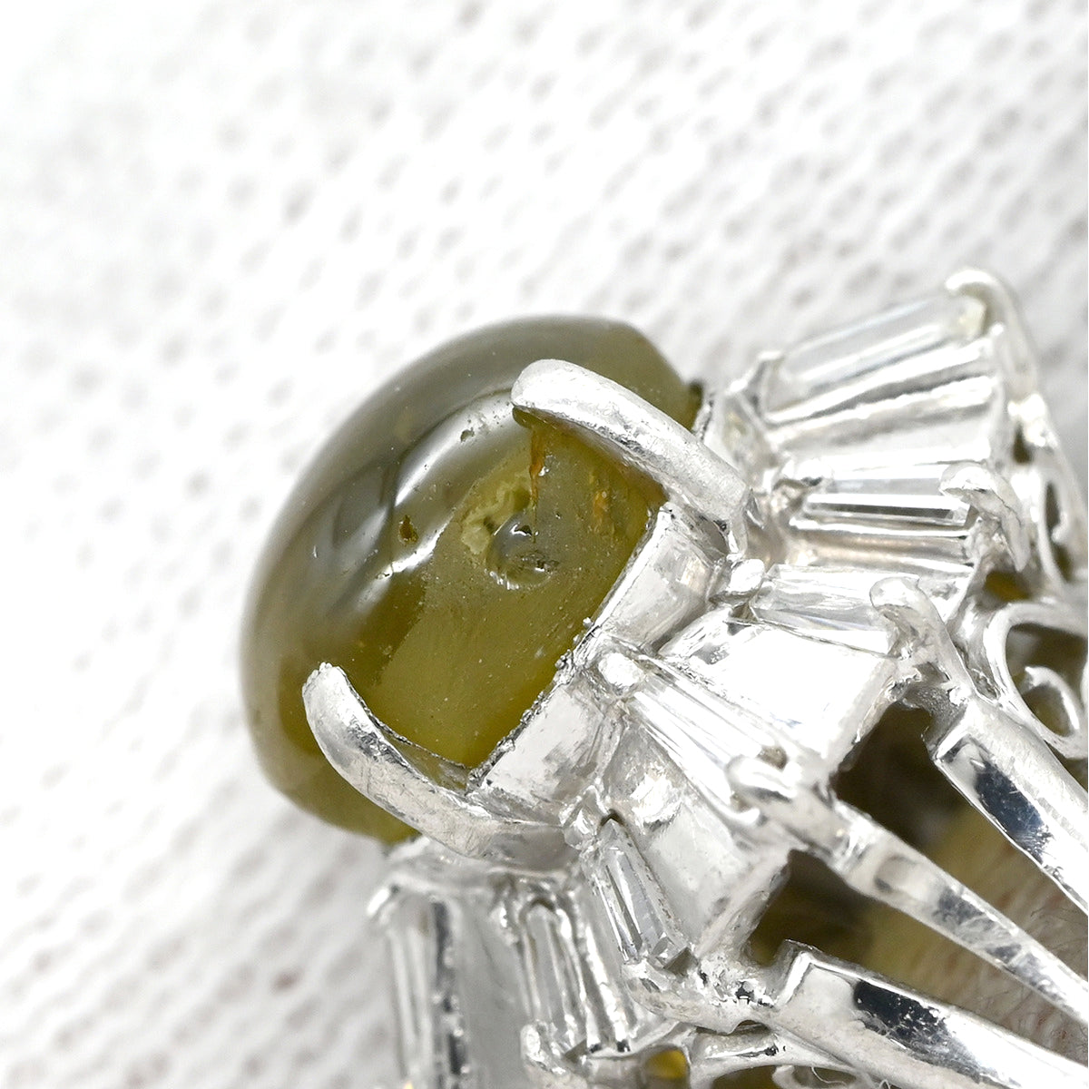 ノンブランド NON BRAND キャッツアイ2.1ct ダイヤリング プラチナシルバー リング 指輪 猫目石 緑褐色 PM900 テーパーダイヤ 7号