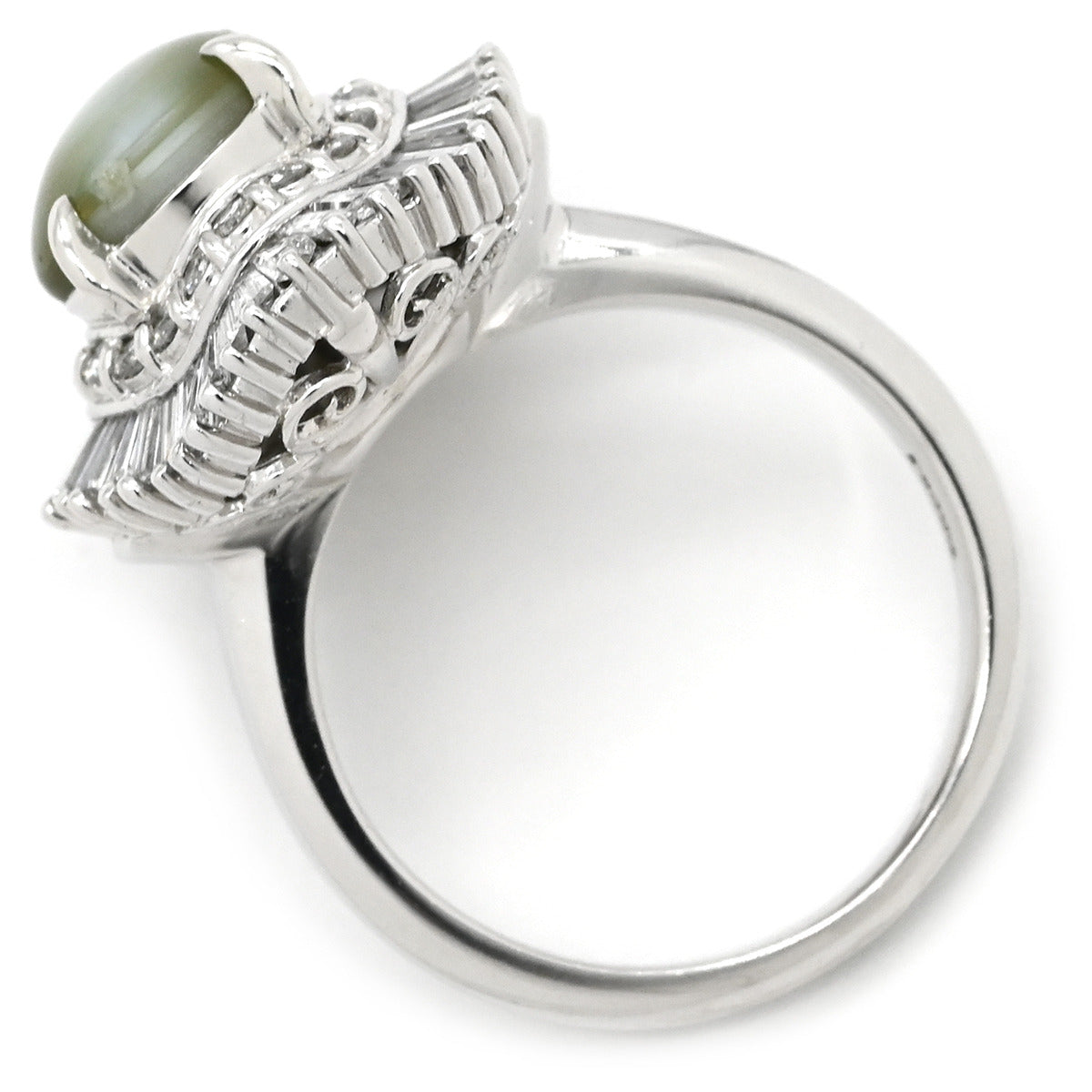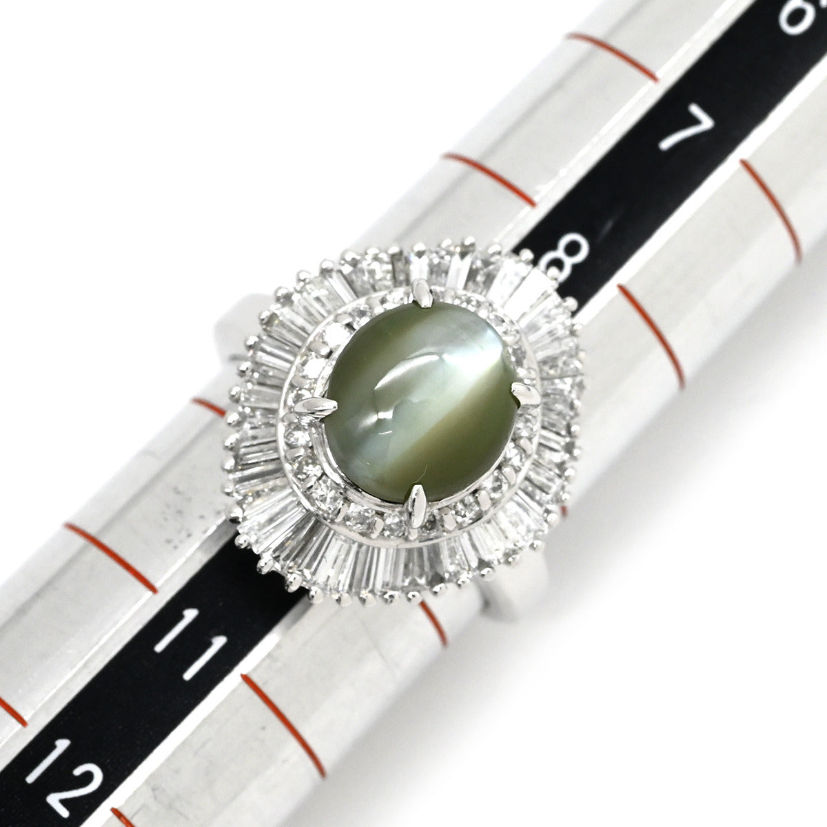 ノンブランド NON BRAND クリソベリル キャッツアイ2.92ct ダイヤ プラチナシルバー リング 指輪 緑褐色 猫目石 プラチナ テーパー 9.5号
