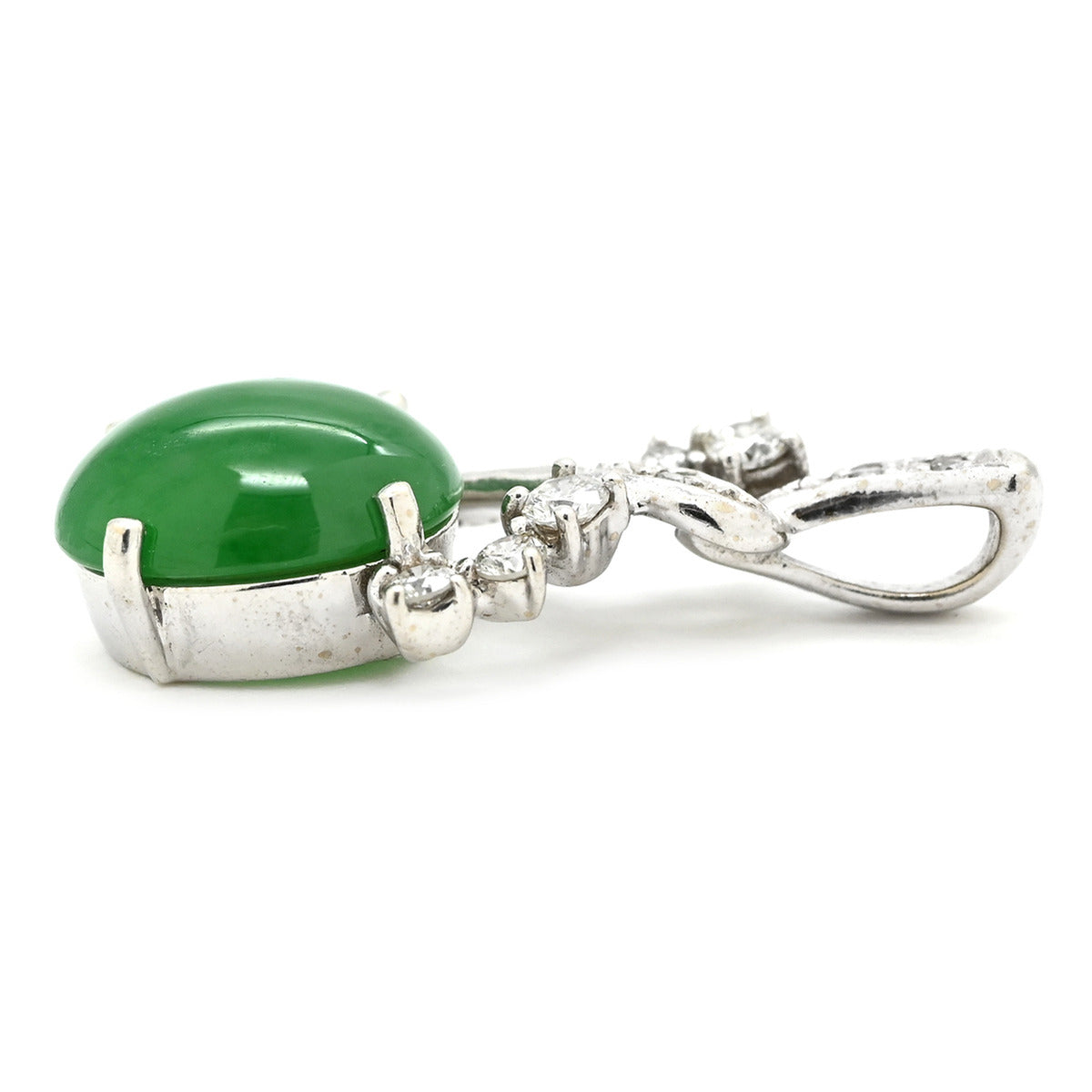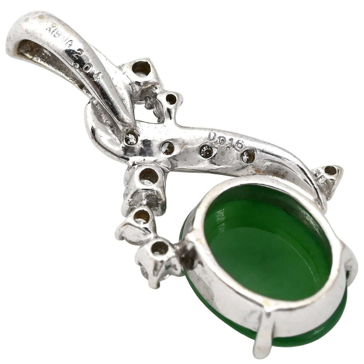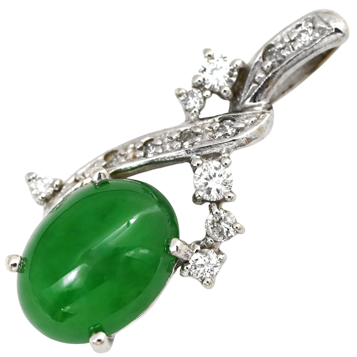 ノンブランド NON BRAND ヒスイ 2.0ct ダイヤ ホワイトゴールド ペンダントトップ 翡翠 ジェダイド 緑 オーバルカボションカット 18K 18金 ネックレストップ