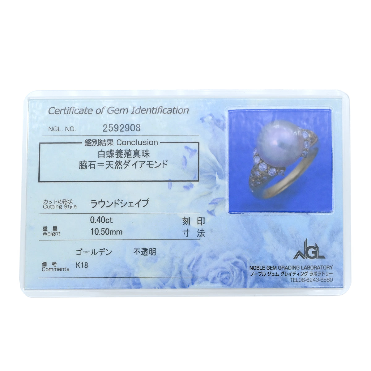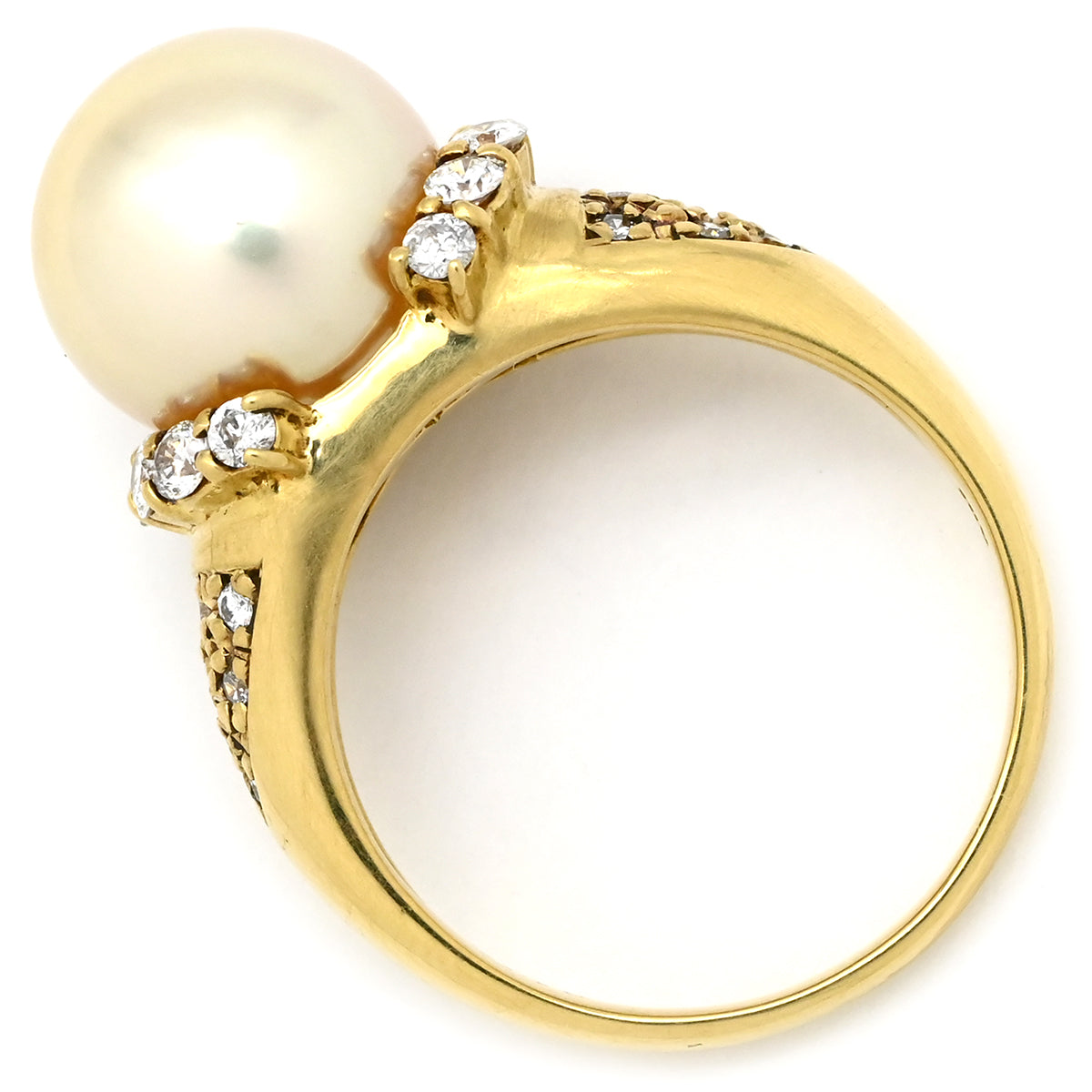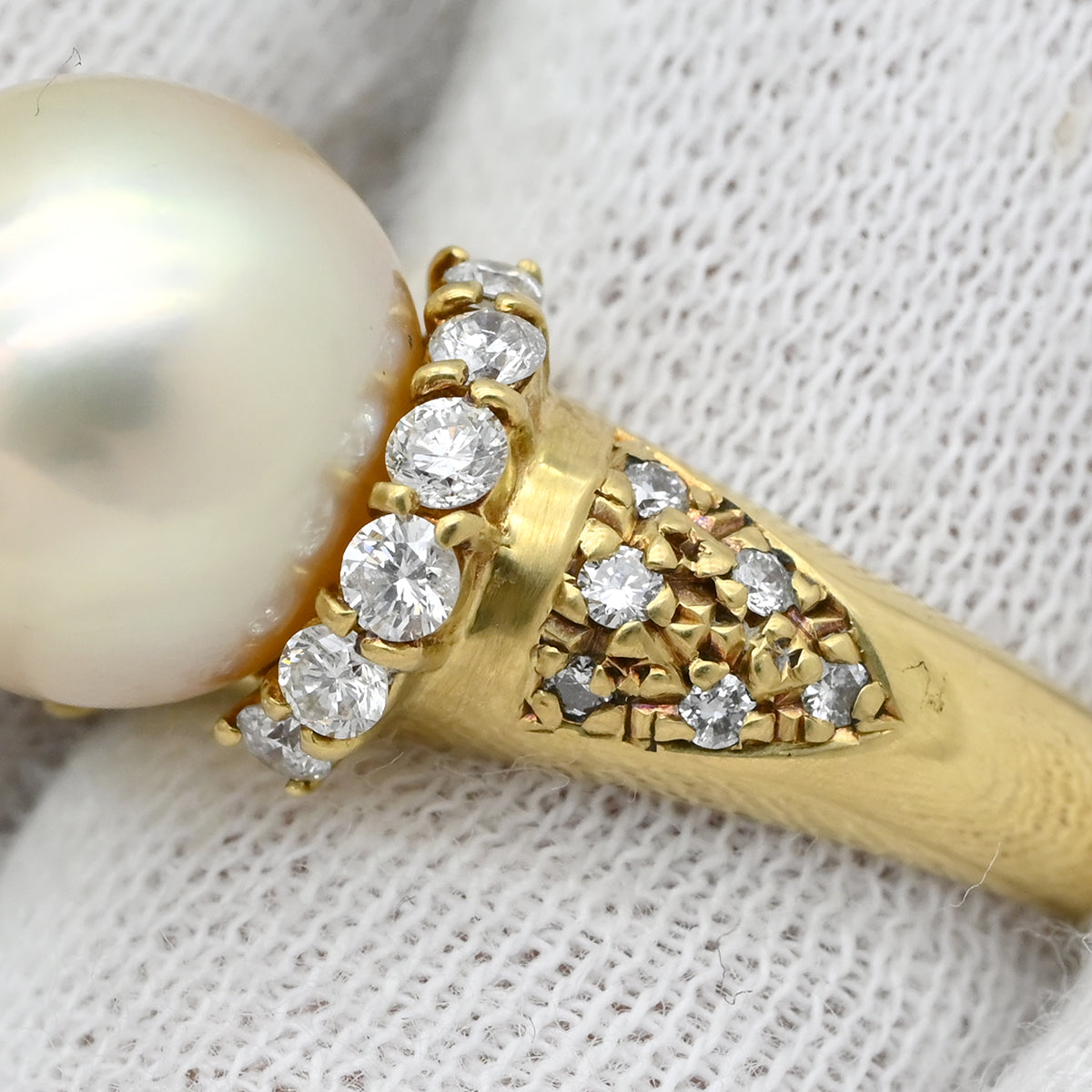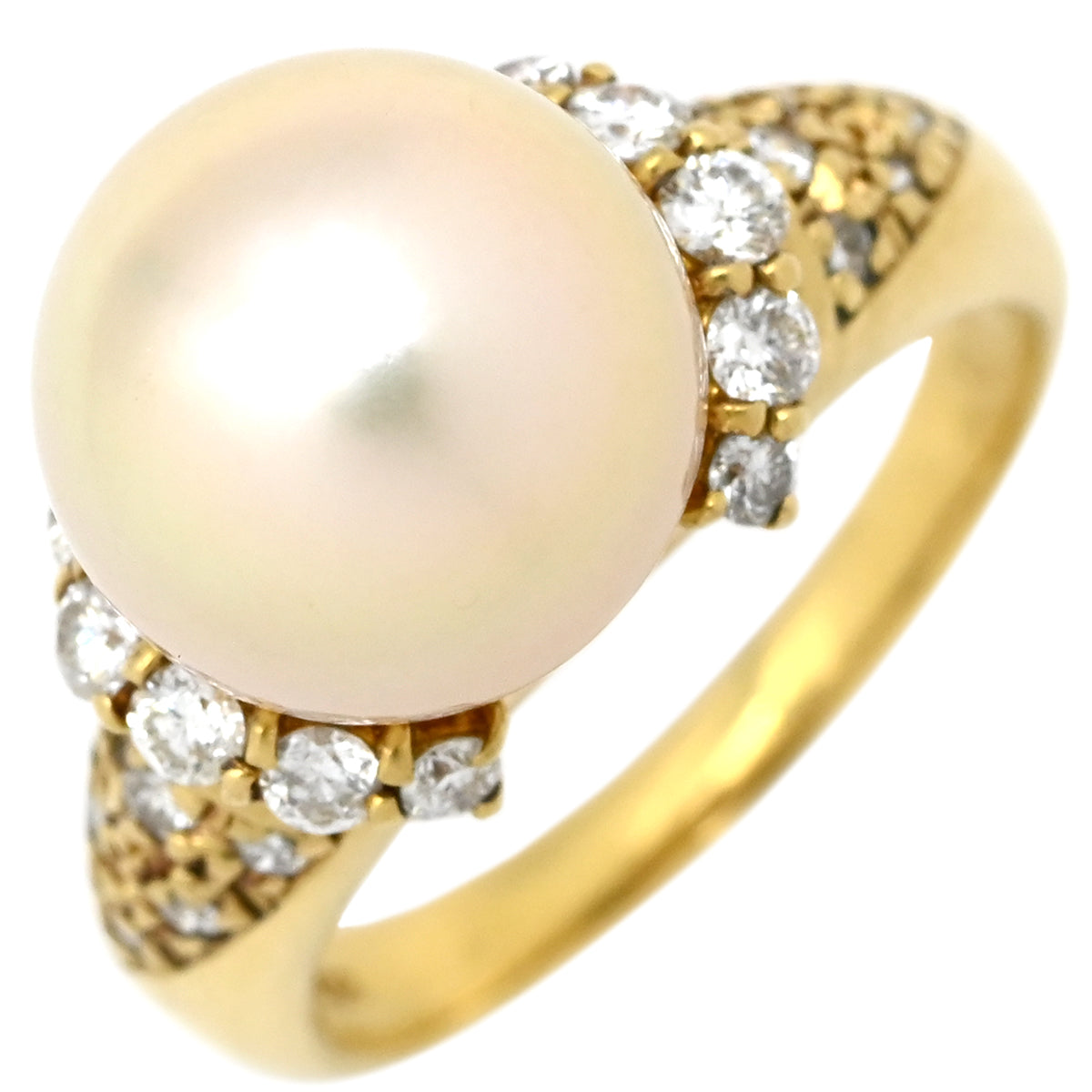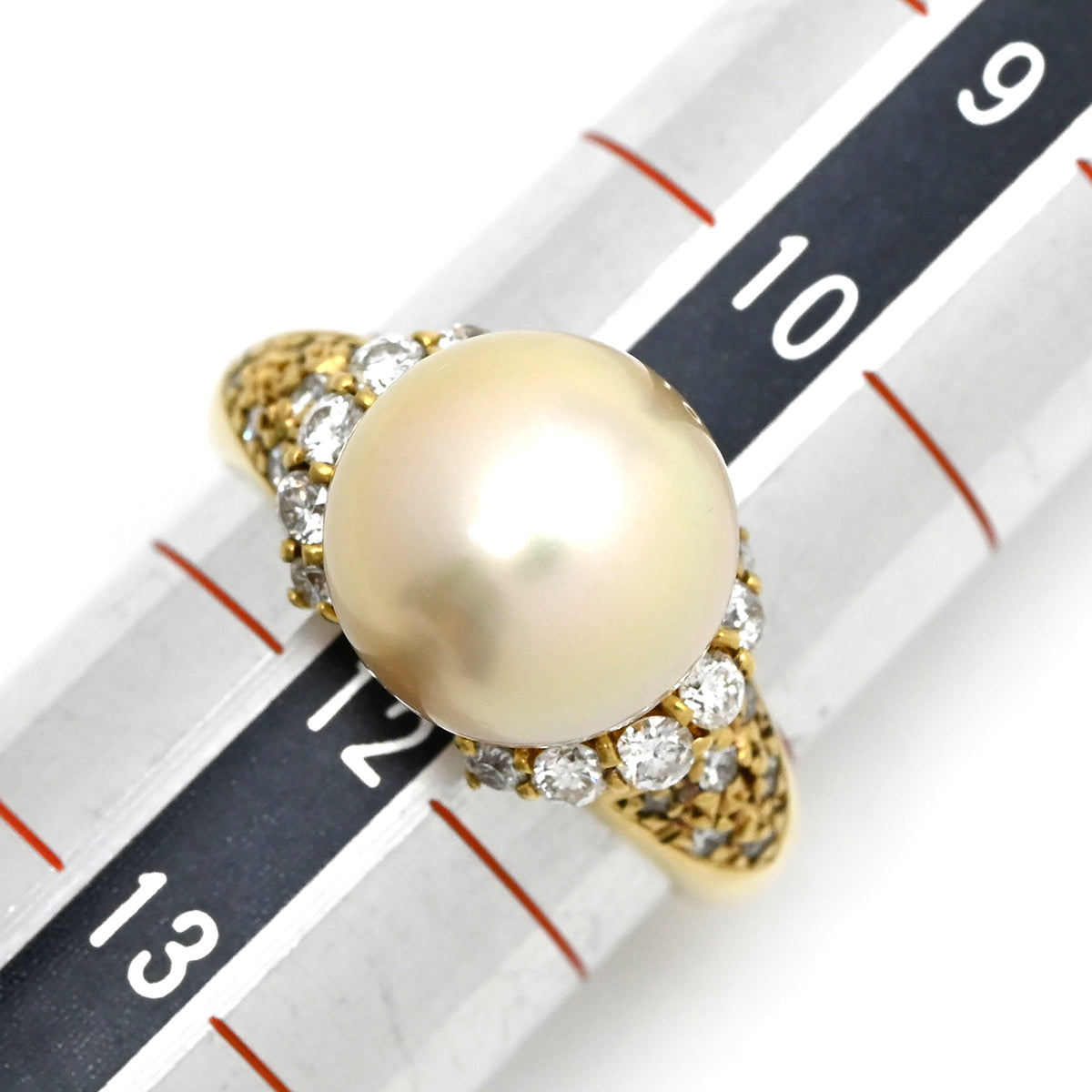 ノンブランド NON BRAND パール ダイヤ リング イエローゴールド リング 指輪 1P 1粒 真珠 18K 18金 YG ダイヤモンド ゴールデンパール 11号