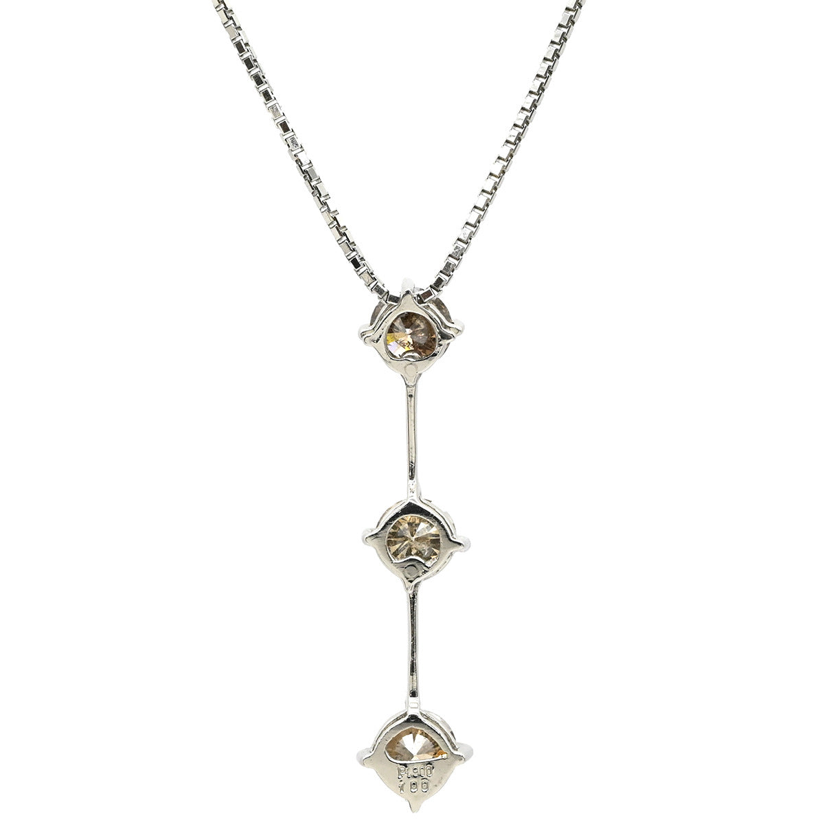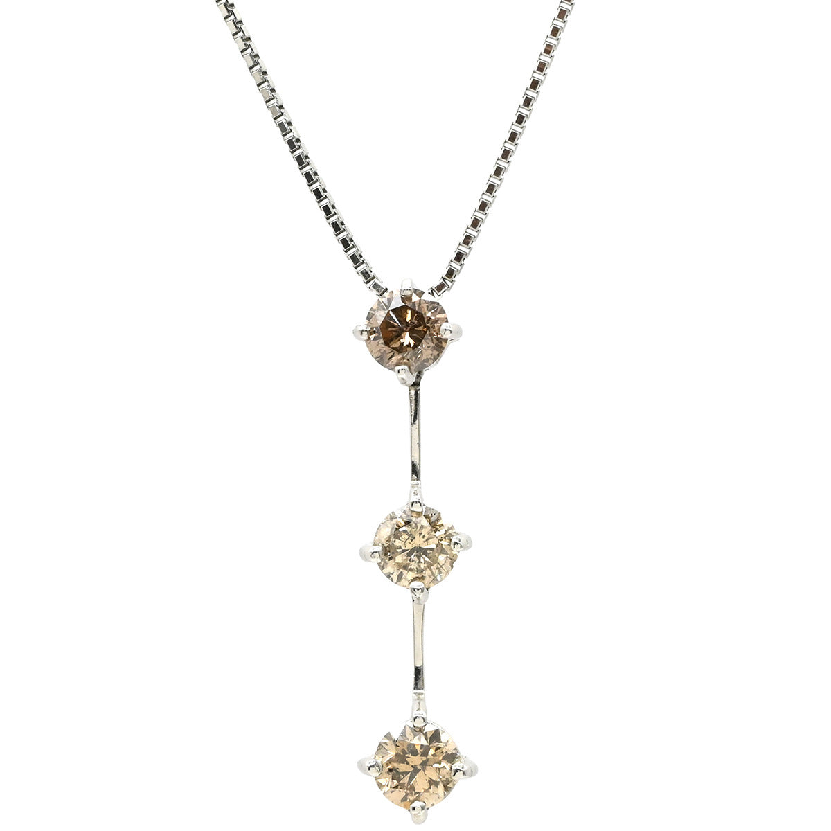 ノンブランド NON BRAND ブラウンダイヤモンド 1.00ct ペンダント プラチナシルバー ネックレス 3連 ドロップ プラチナ ブリリアントカット 3石 3粒 ベネチアンチェーン