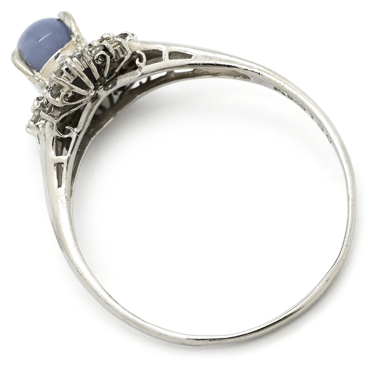 ノンブランド NON BRAND スターサファイア 1.39ct ダイヤモンド プラチナシルバー リング 指輪 青 ブルー プラチナ900 オーバルカボションカット 1石 18号