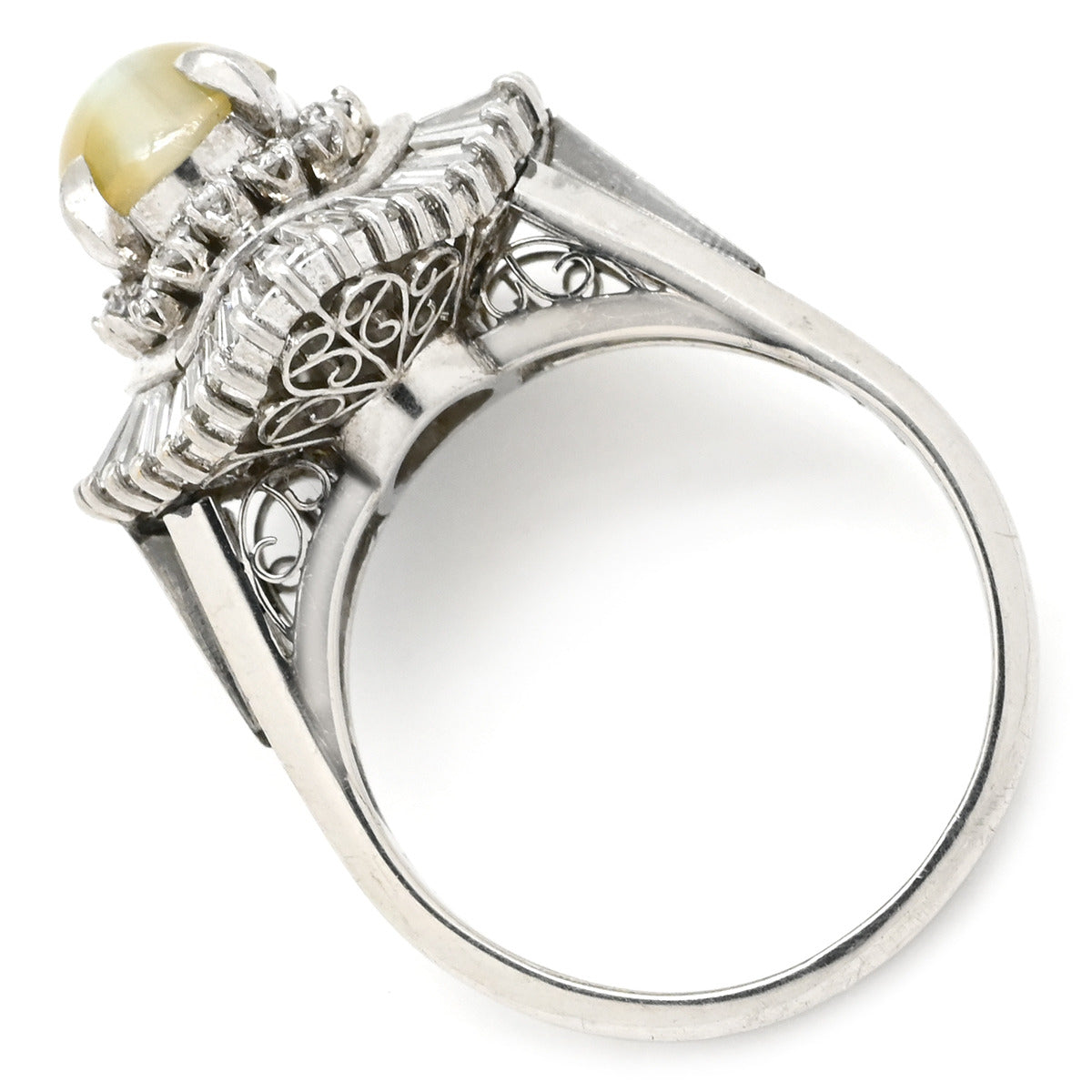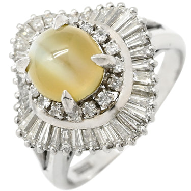ノンブランド NON BRAND クリソベリル キャッツアイ ダイヤ リング プラチナシルバー リング 指輪 猫目石 2.25ctct プラチナム PT ダイヤモンド オーバル 15号