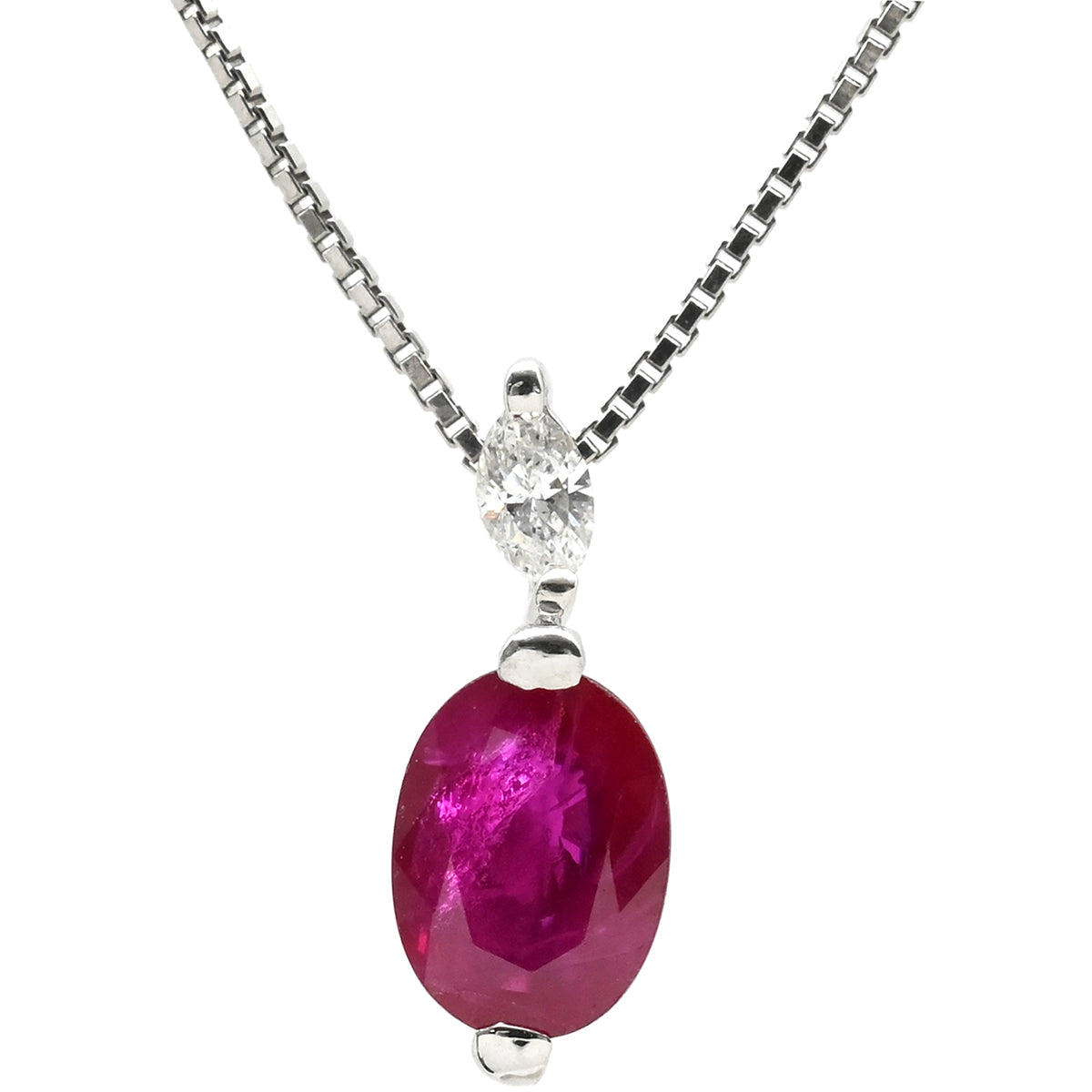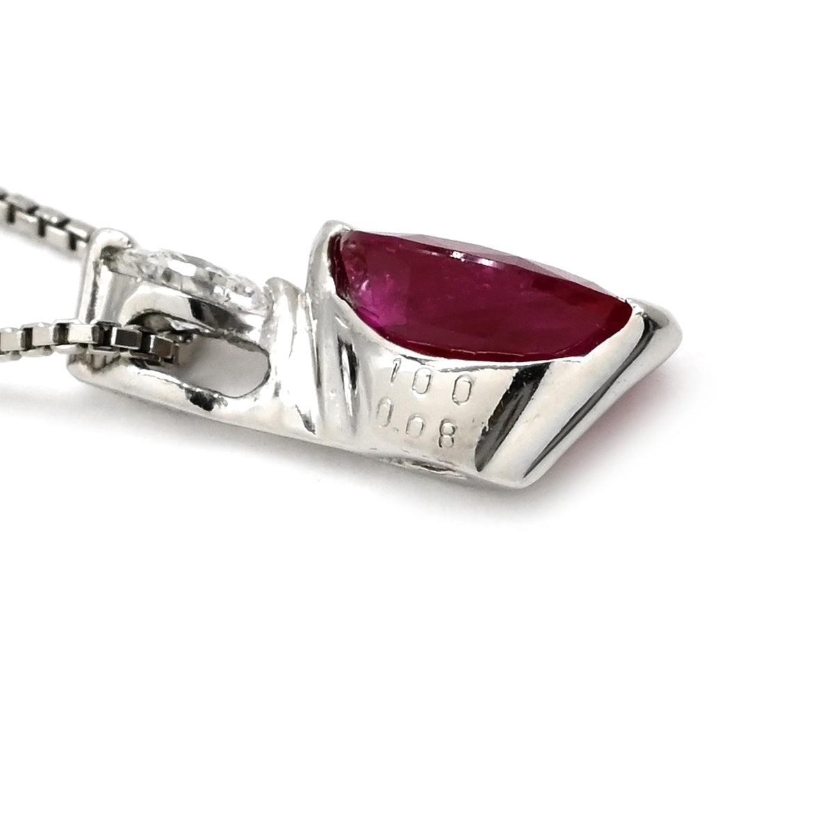 ノンブランド NON BRAND ルビー 1.00ct ダイヤモンド ペンダント プラチナシルバー ネックレス 赤 1石 1粒 オーバルカット マーキスカットダイヤ プラチナ