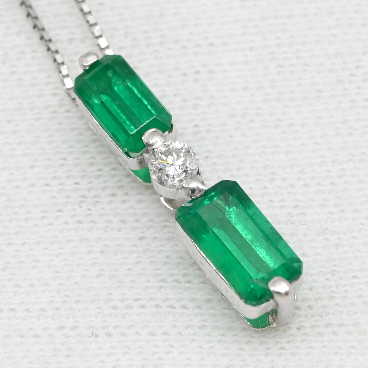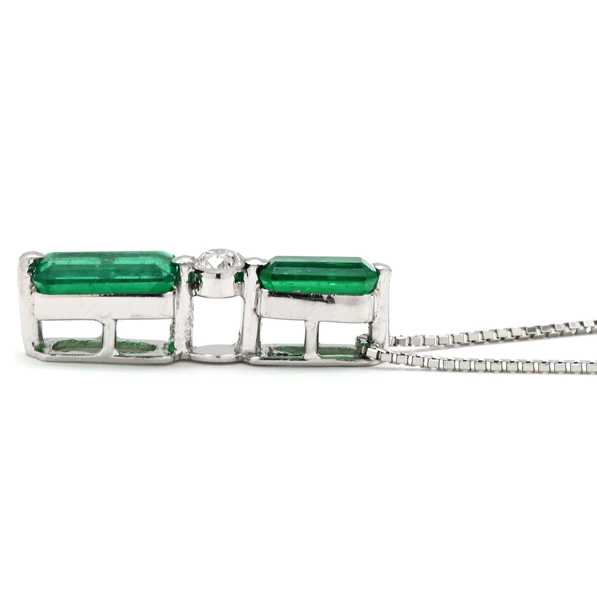 ノンブランド NON BRAND エメラルド 1.53ct ダイヤ ペンダント プラチナシルバー ネックレス 緑 1Pダイヤ スクエア エメラルドカット ベネチアンチェーン プラチナ