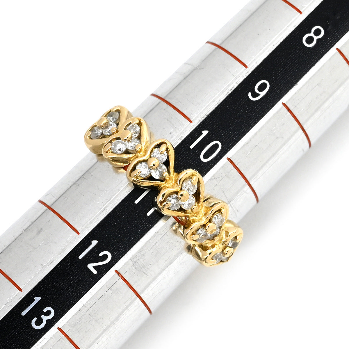 ノンブランド NON BRAND ダイヤ 0.3ct イエローゴールド リング 指輪 Au750 18K 18金 メレダイヤ 18P 18石 18粒 ハートモチーフ 一文字デザイン 11号
