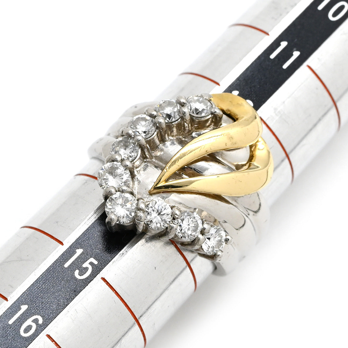 ノンブランド NON BRAND ダイヤ 1.005ct プラチナシルバー リング 指輪 Pt900×K18YG コンビ Au750 18K 18金 9P 9石 9粒 Vデザイン ウェーブ 13.5号