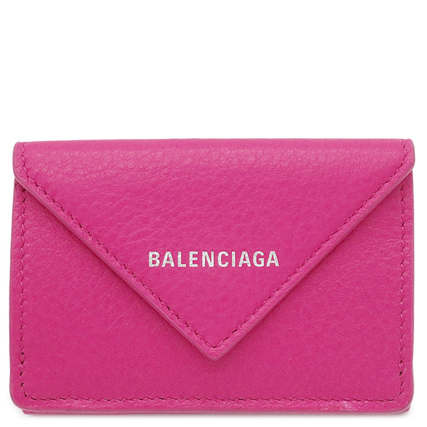 バレンシアガ BALENCIAGA ペーパー ミニ ウォレット 391446 ピンク レザー 三つ折り財布 シルバー金具 コンパクトウォレット