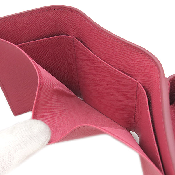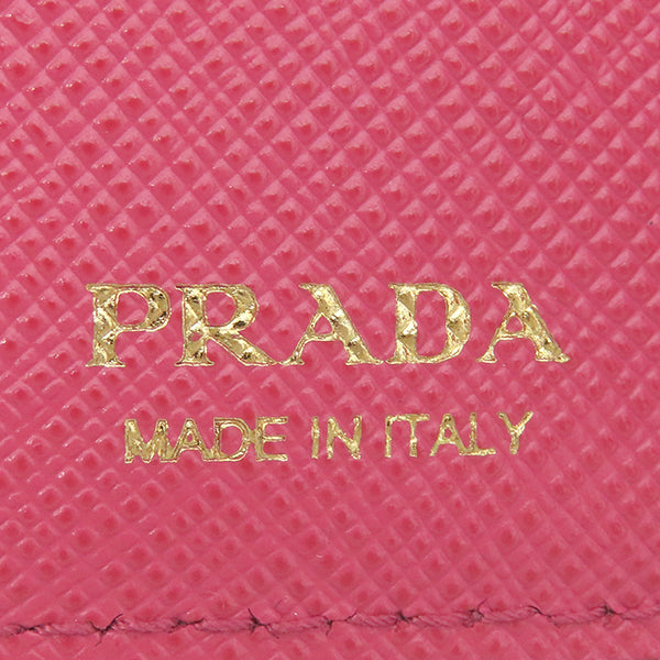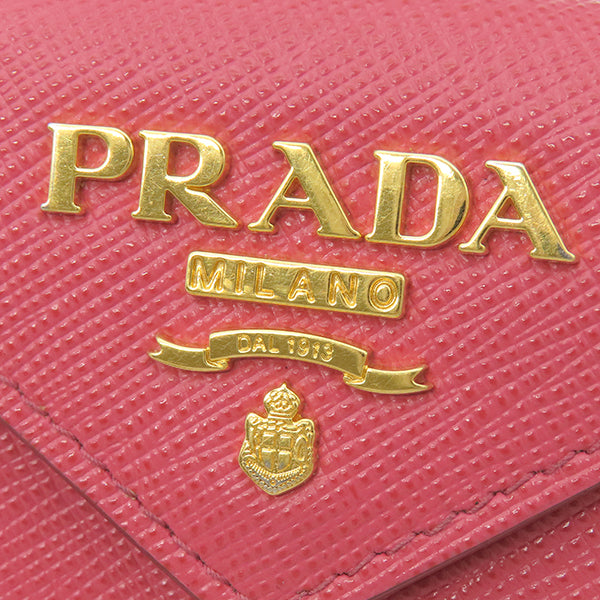 プラダ PRADA メタルロゴ 1MH021 ピンク レザー 三つ折り財布 ゴールド金具 コンパクトウォレット