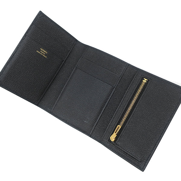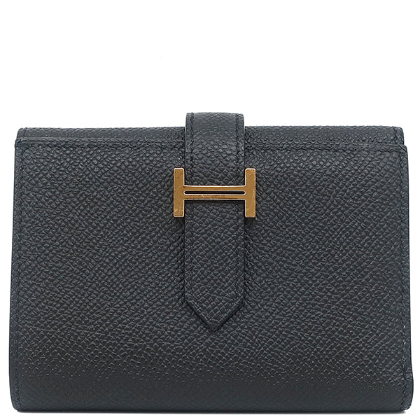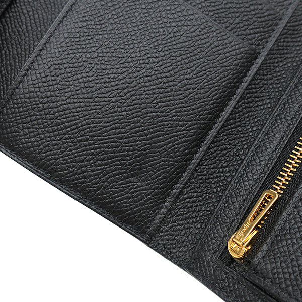 エルメス HERMES ベアン コンビネ ブラック ヴォーエプソン 三つ折り財布 ゴールド金具 黒