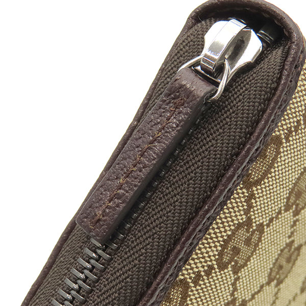 グッチ GUCCI GG ジップアラウンドウォレット 307980 ベージュ×ダークブラウン GGキャンバス レザー 長財布 シルバー金具 ガンメタル金具 茶 メタルバー