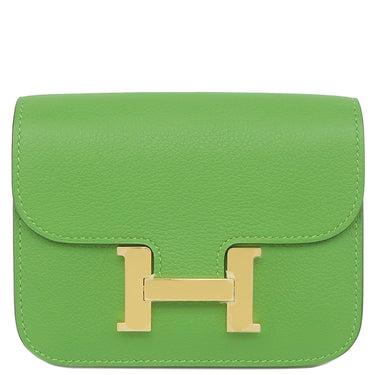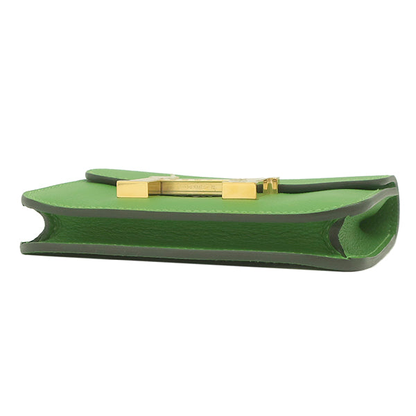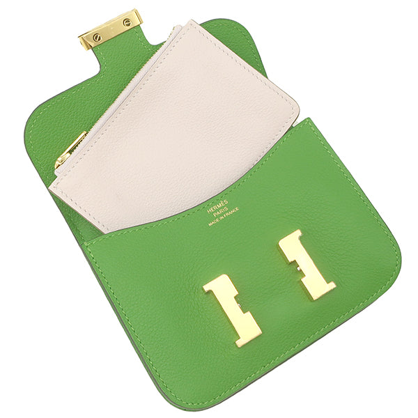 エルメス HERMES コンスタンス スリム ヴェルソ ウォレット ヴェールユッカ×モーヴペール エバーカラー 二つ折り財布 ゴールド金具 新品 未使用 緑 ピンク バイカラー