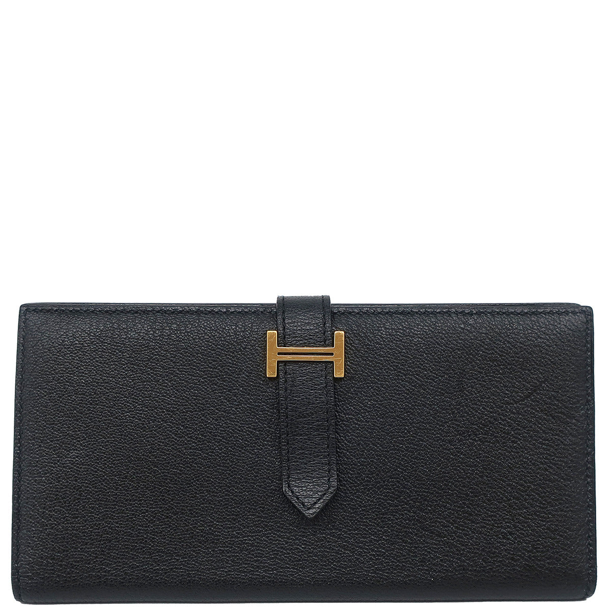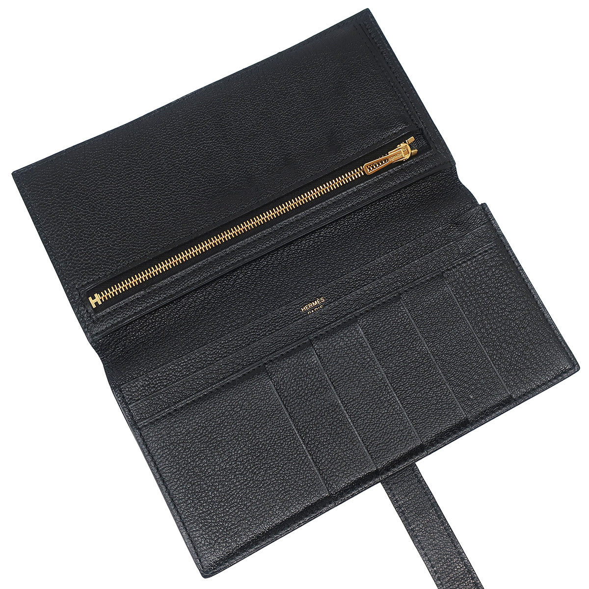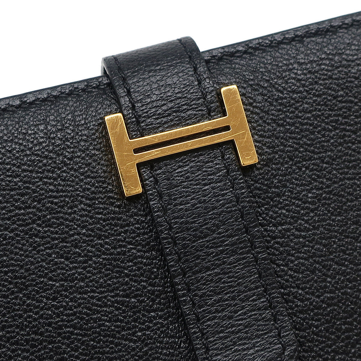 エルメス HERMES ベアンスフレ ブラック シェーブル 長財布 ゴールド金具 黒 二つ折り財布