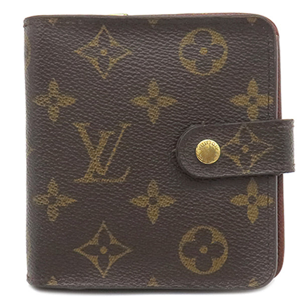 ルイヴィトン LOUIS VUITTON コンパクトジップ M61667 モノグラム モノグラムキャンバス 二つ折り財布 ゴールド金具 茶