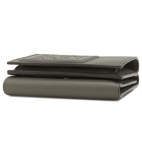 ロエベ LOEWE トライフォールド ウォレット C565TR2X04 カーキグリーン サテンカーフ 三つ折り財布 シルバー金具 小銭入れ 札入れ コンパクト